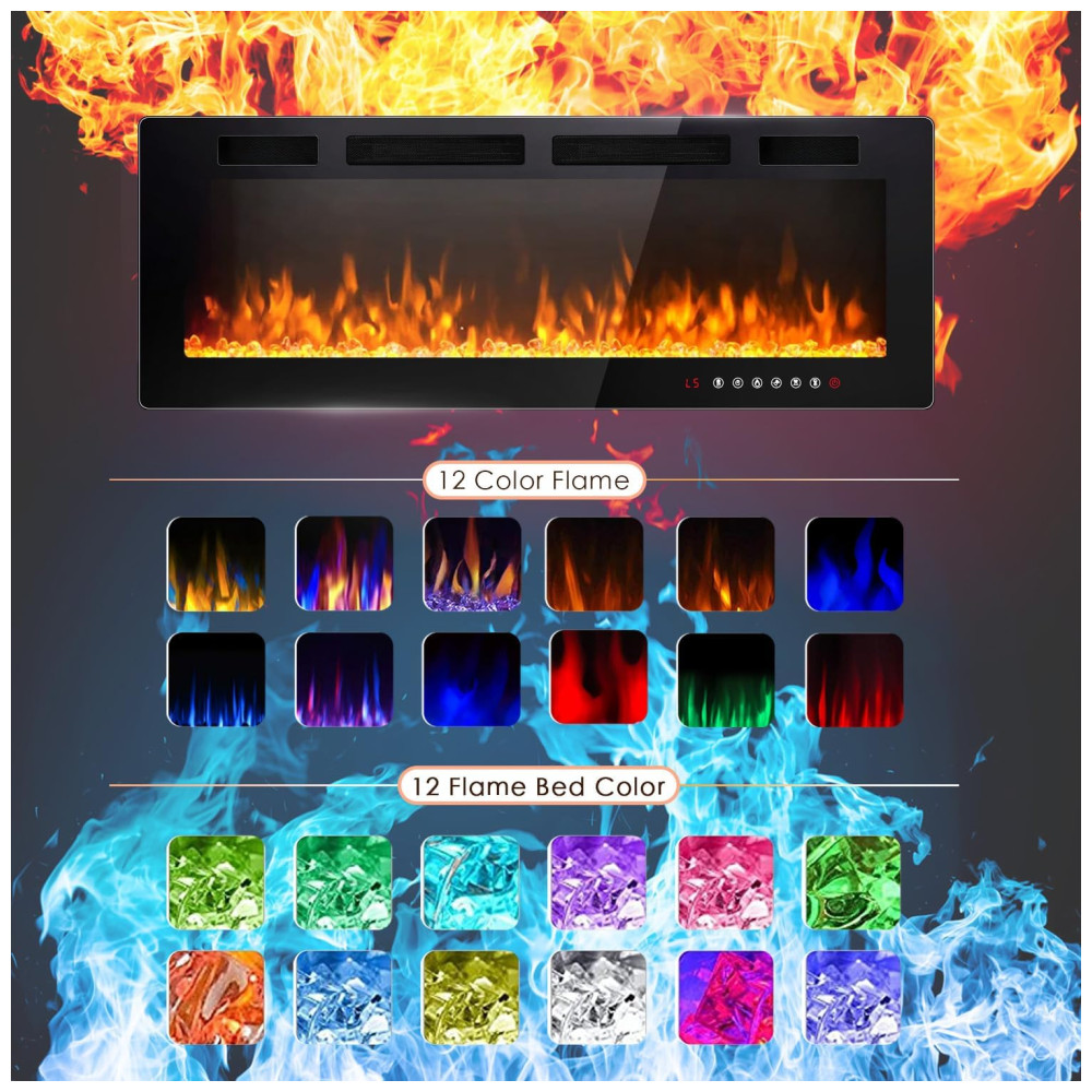 Chama atraente há um botão para controlar a cor da chama e um botão para controlar a cor do leito da chama. 12 cores de chama e 12 cores de leito de chama, 5 modos de velocidade de chama e 5 níveis de brilho de chama. Você pode obter a chama que deseja. Basta pegar o controle remoto fornecido e escolher as configurações mais confortáveis.