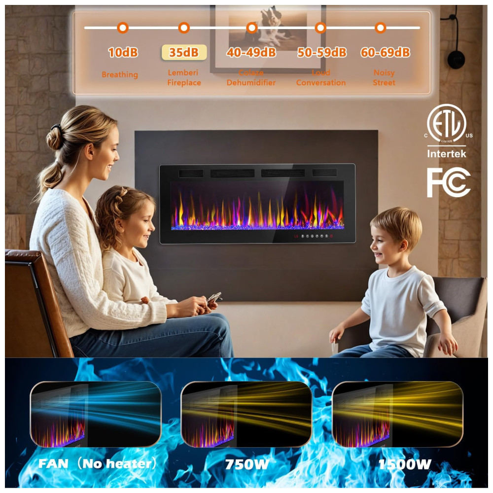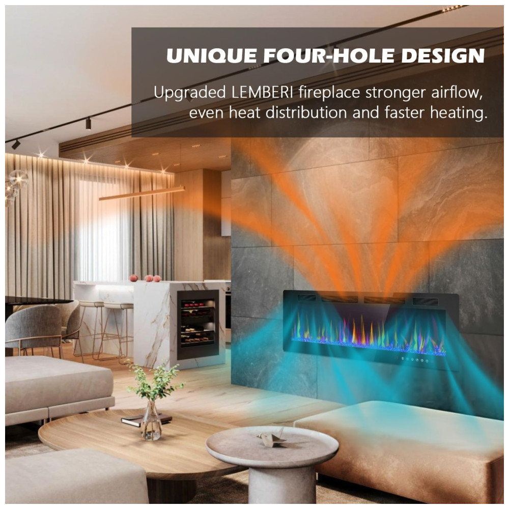 Lareira Elétrica de Embutir A45x106L com Controle Remoto e 12 Cores de Chamas 110V 1500W LEMBERI Preta