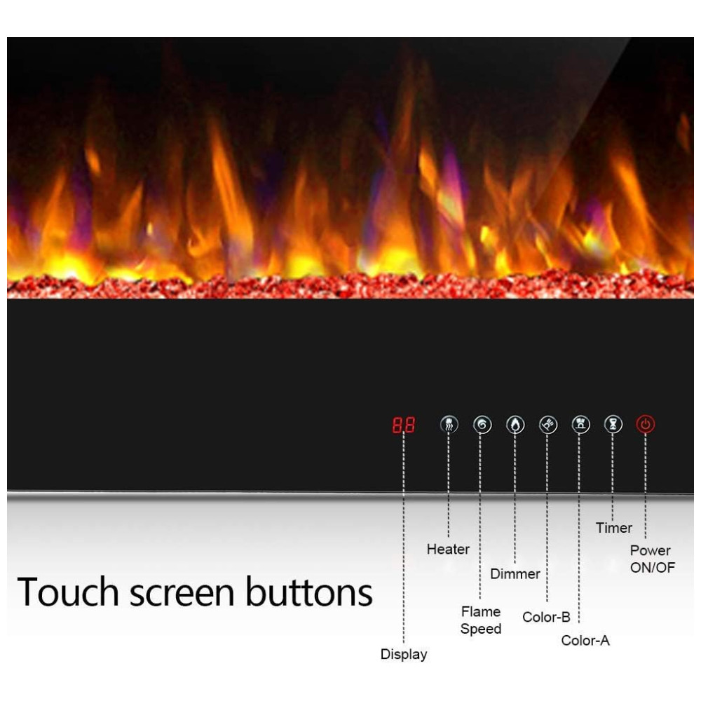MODOS DE CONTROLE FLEXÍVEIS: Controle remoto e tela sensível ao toque tornam mais conveniente controlar todas as funções da lareira elétrica, incluindo interruptor de energia, controle de timer de 1 a 8 horas, interruptor independente de aquecimento e chama, cor da chama ajustável e controle de velocidade, além da função de modo de sono.