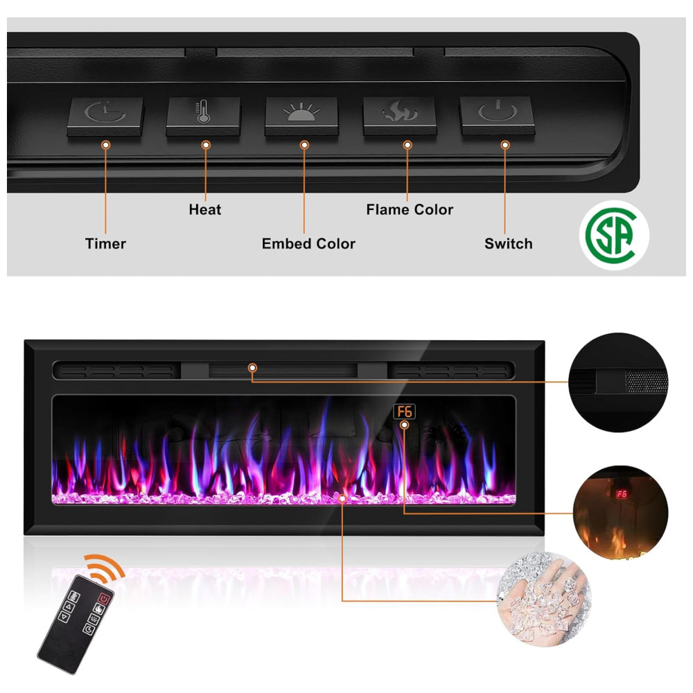 As inserções da lareira elétrica oferecem dois modos de controle: remoto e botões na tela do painel, proporcionando fácil acesso às funções da lareira: interruptor de energia, controle de temporizador de 0,5 a 9 horas, função de modo de sono, cor da chama ajustável, interruptores separados para calor e chama, e o efeito de chama pode operar com ou sem calor.