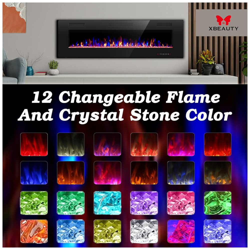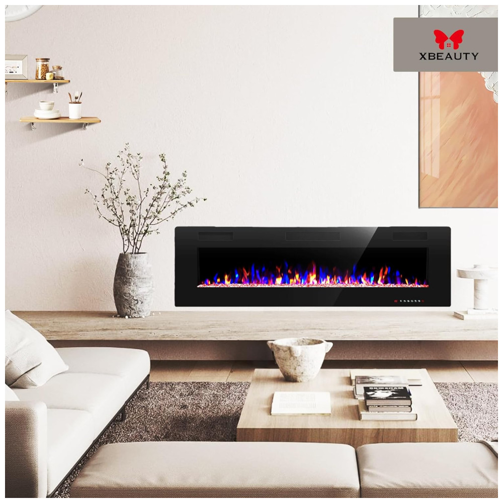 Lareira Elétrica de Embutir A45x127L com Temporizador Chamas Multicoloridas e Tela Sensível ao Toque Xbeauty Preta