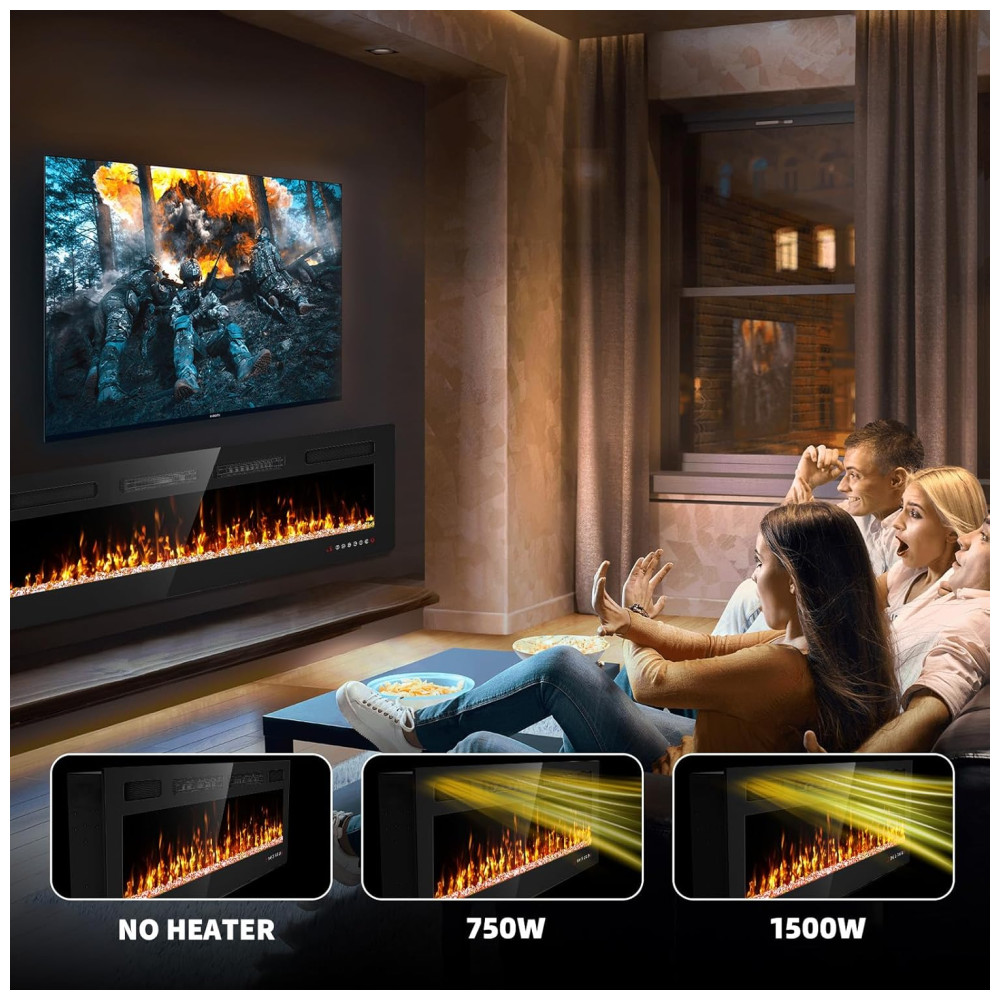 Escolha a temperatura desejada entre dois modos: 750W ou 1500W. Esta lareira tem apenas 8,1 cm de espessura, ou seja, não ocupará muito espaço no seu ambiente. Ela é 20% mais fina que outras lareiras, facilitando a instalação e o uso. Esta lareira ajudará você a economizar dinheiro e espaço enquanto melhora seu conforto e estilo.