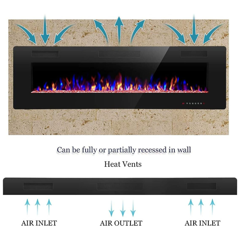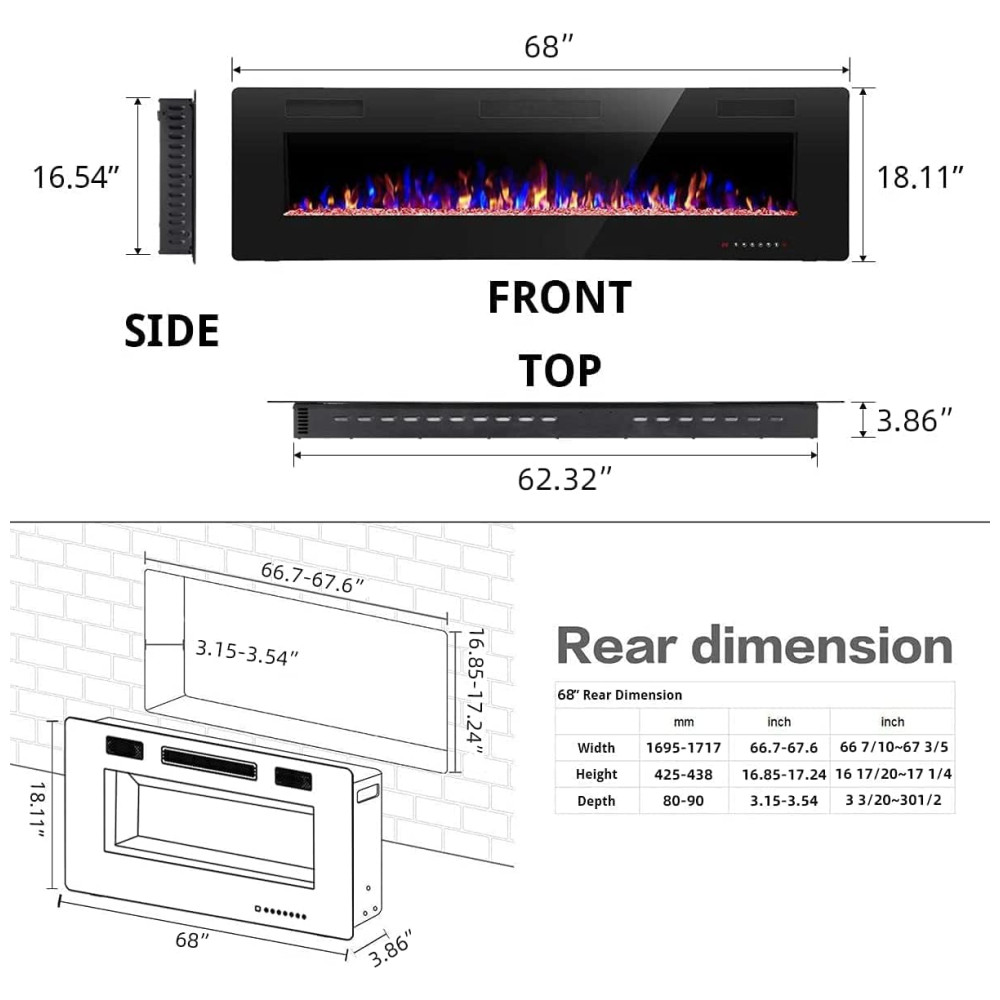 Modos de Operação Múltipla: Tela sensível ao toque e controle remoto; 12 modos de cor de chama e leito de brasas LED; 5 modos de velocidade da chama; 5 níveis de brilho da chama; Design especial de chama automática (a cor e o brilho da chama mudam automaticamente).