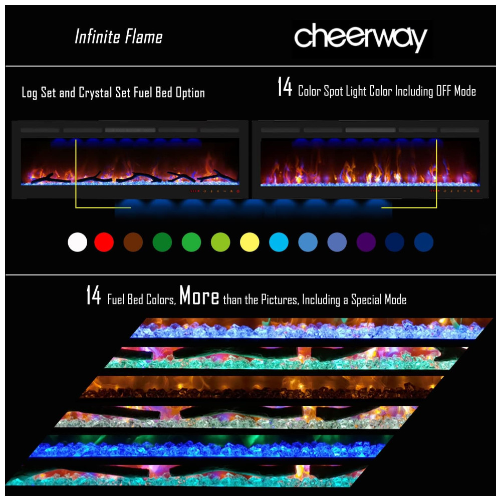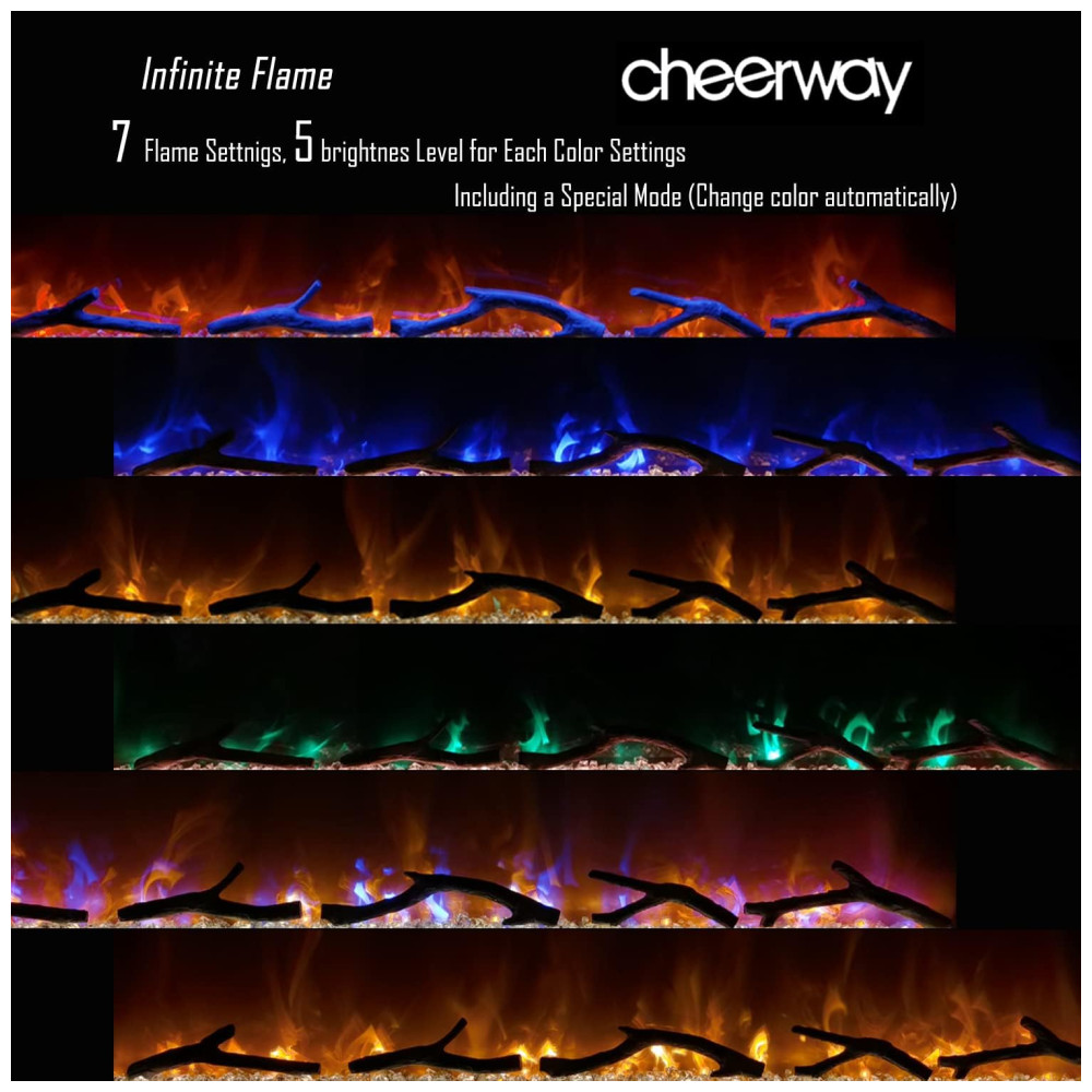 Lareira Elétrica de Embutir A45x182L com Controle Remoto e Chamas Multicolorida 110V Cheerway Preta