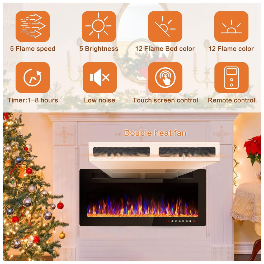 Múltiplos métodos de instalação Esta lareira elétrica não só pode ser embutida ou semi rebaixada na parede, mas também pode ser montada na parede, ajuste perfeito para paredes de pinos de 5×15 centimetros. Tamanho do produto 182x45x9 centimetros. A espessura da lareira elétrica atualizada é reduzida para 9 centimetros e não será intrusiva na parede. Pode ser instalado na sala ou no quarto, mas precisa ficar longe de outros eletrodomésticos.