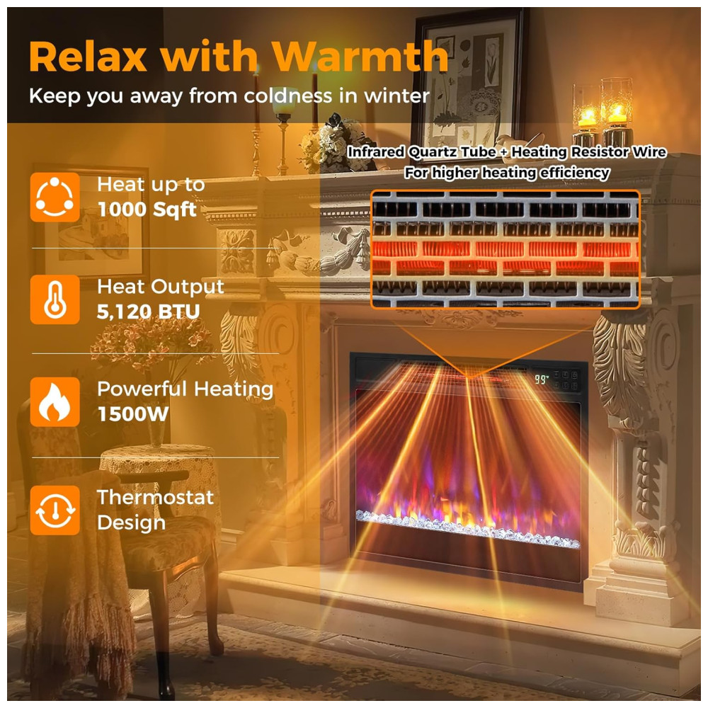Este aquecedor elétrico embutido é uma excelente escolha para proporcionar conforto e relaxamento em sua casa. Equipado com tecnologia avançada de infravermelho de quartzo, ele oferece alto desempenho, gerando 5120 BTU de calor auxiliar e aquecendo rapidamente ambientes de até 1000 pés quadrados.