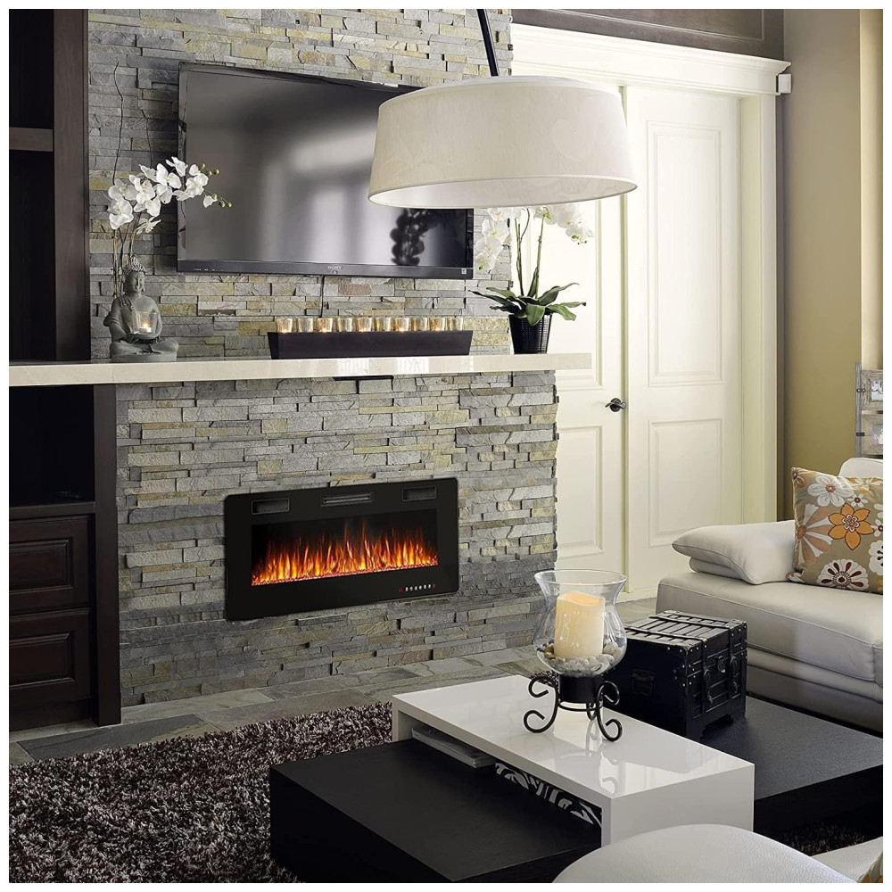 Grande capacidadeCores de LED de espectro total, 12 modos de cores de chama e leito de chama de LED 5 modos de velocidade de chama 5 níveis de brilho de chama, design de chama especialmente automático. Vem com pedra de cristal, a chama realista oferecerá uma experiência de fogo realista.