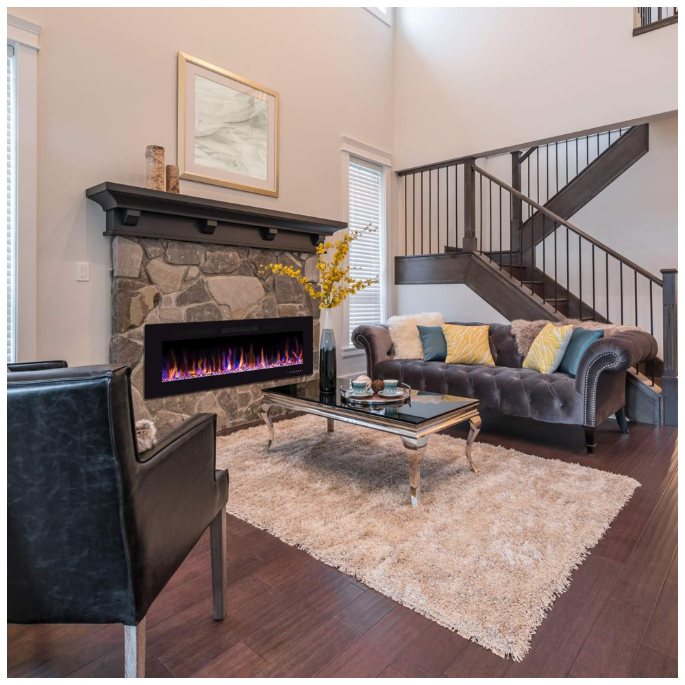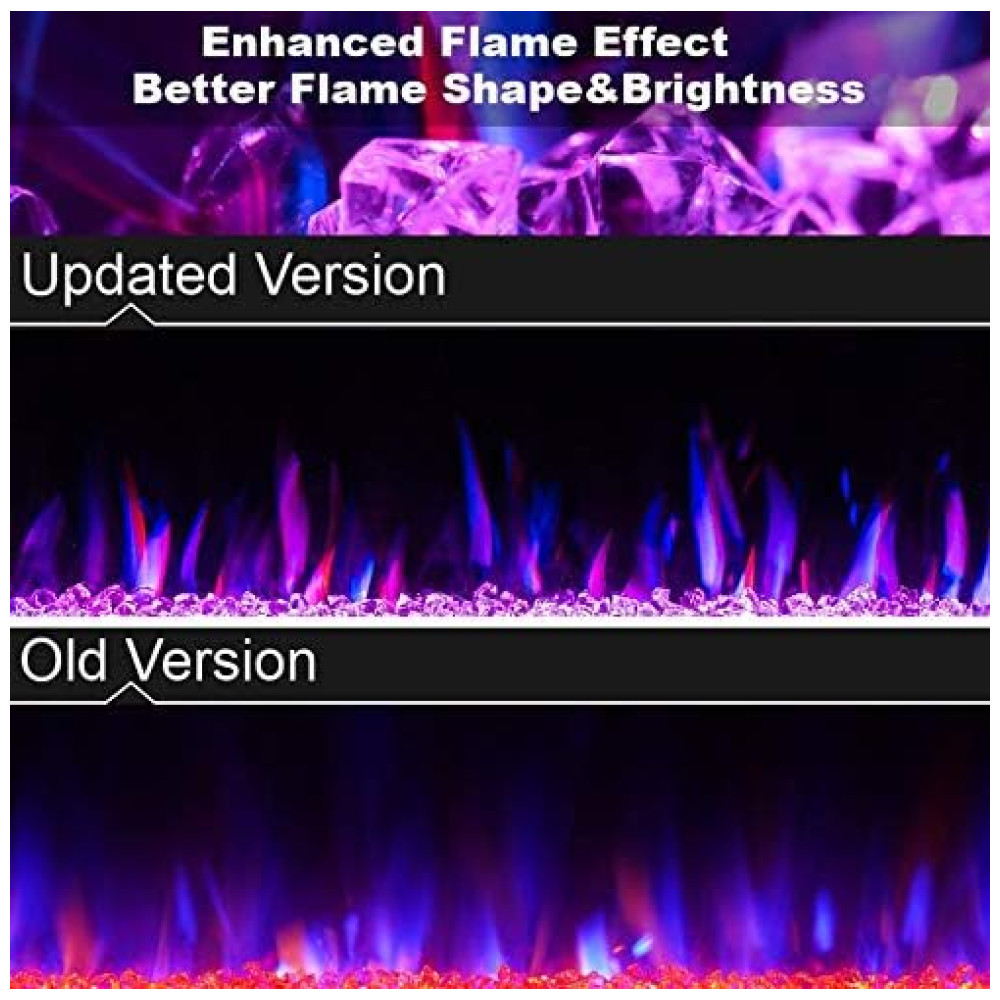 Efeitos de Chama Realistas: Cores LED de espectro completo para um display único de leito de brasas – 12 cores de chama incluem as 3 cores clássicas de chama (vermelho, laranja e azul), 5 velocidades de chama e 5 níveis de brilho da chama, 12 opções de iluminação de leito de brasas. Luzes LED de alta intensidade com grande display permitem que a chama “queime” alto, surgindo lentamente da “fonte” e sendo puxadas para o topo da lareira onde brilham no calor.