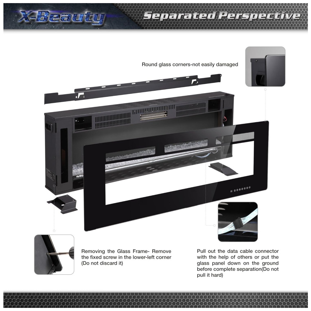 Lareira Elétrica de Embutir A46x91L com Controle Remoto e Tela Sensível ao Toque 1500W 110v XBEAUTY Preto
