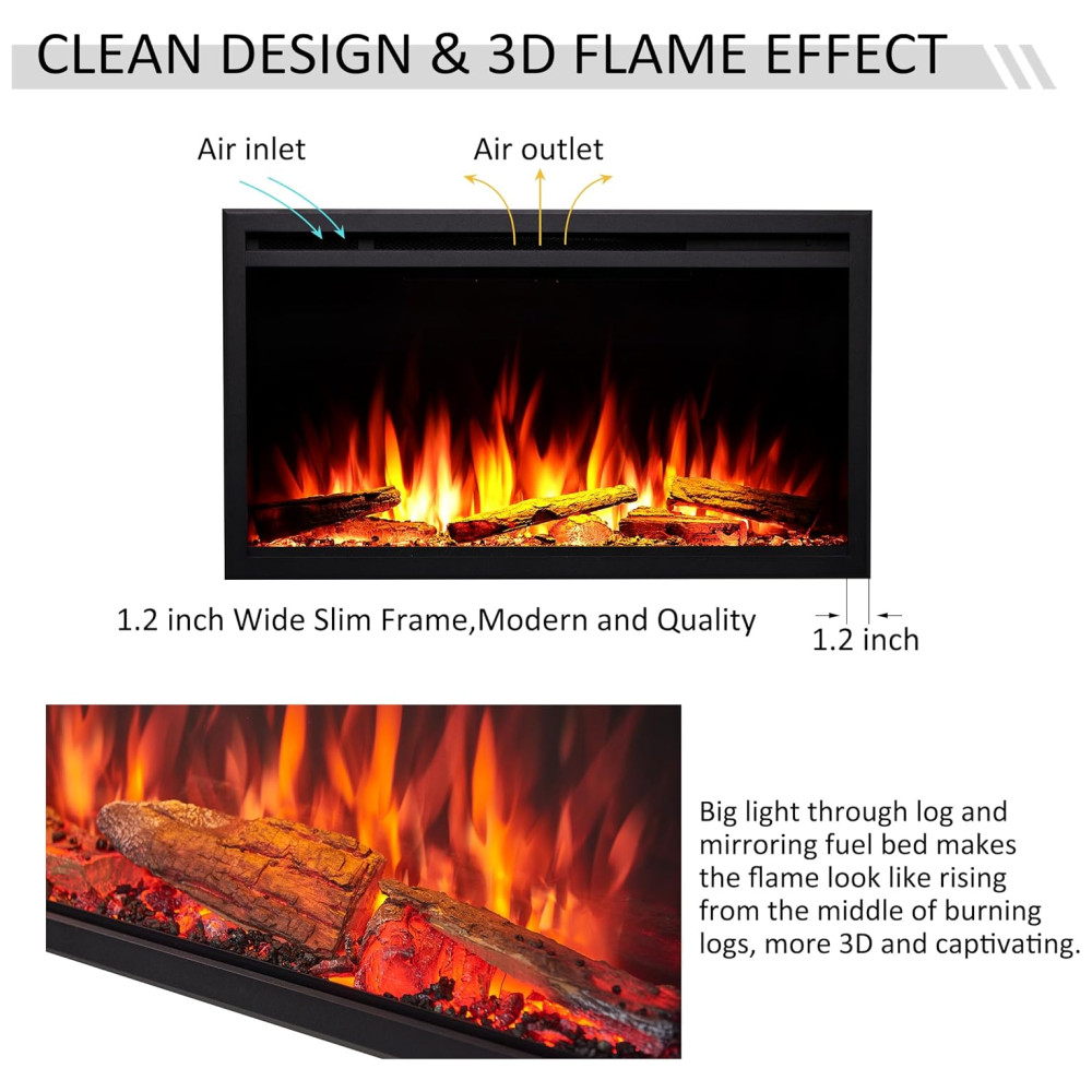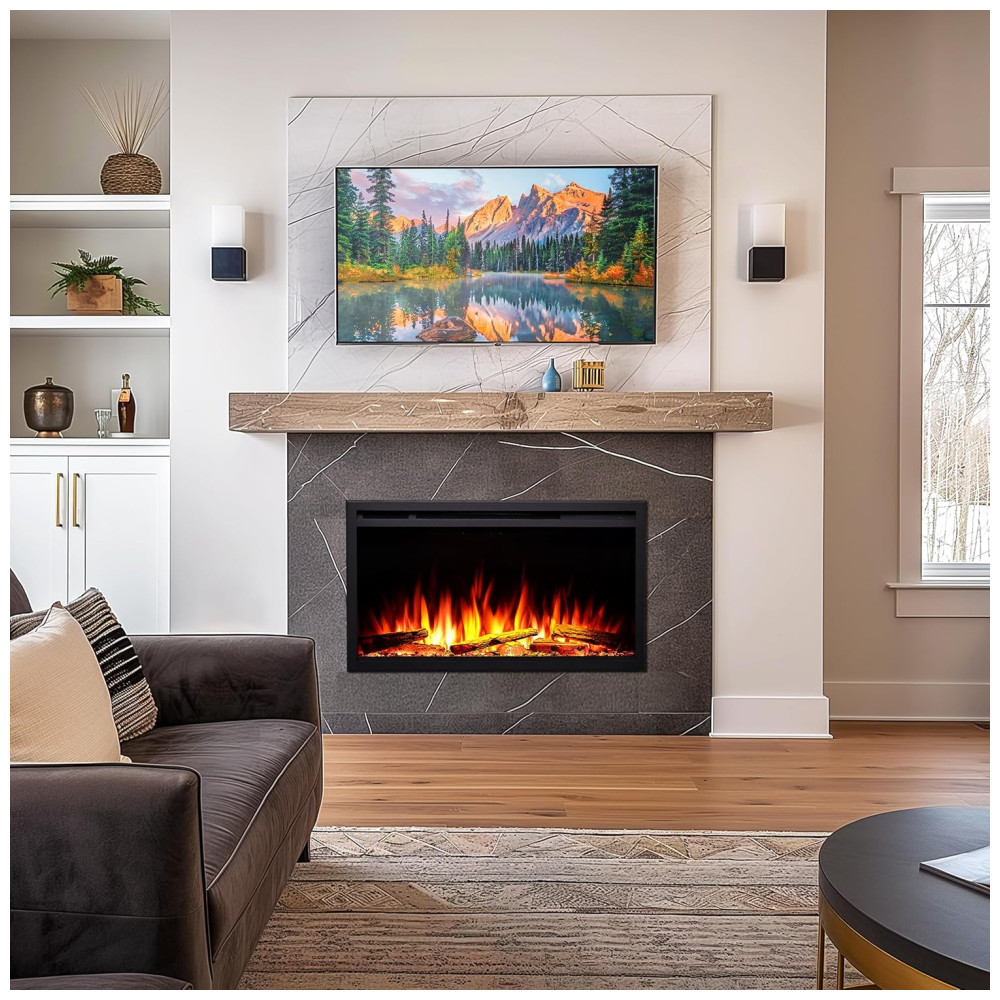 Lareira Elétrica de Embutir A48x103L cm com 8 Cores de Chama Leito de Combustível Controle Remoto por APP 110V 1500W Legend Flame EF352A Preta