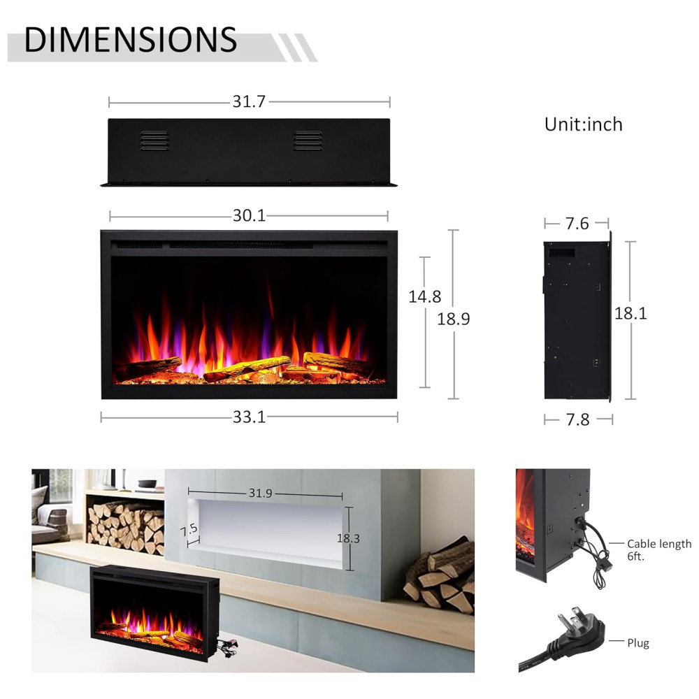 A lareira apresenta uma combinação de efeitos de chama com cores laranja e uma gama de 8 outras cores, oferecendo 5 níveis de brilho ajustáveis. As toras vêm com 8 opções de cores de cama de combustível que adicionam um toque de realismo extra. O som crepitante pode ser ativado com ou sem calor, proporcionando uma experiência completa e aconchegante durante todo o ano.