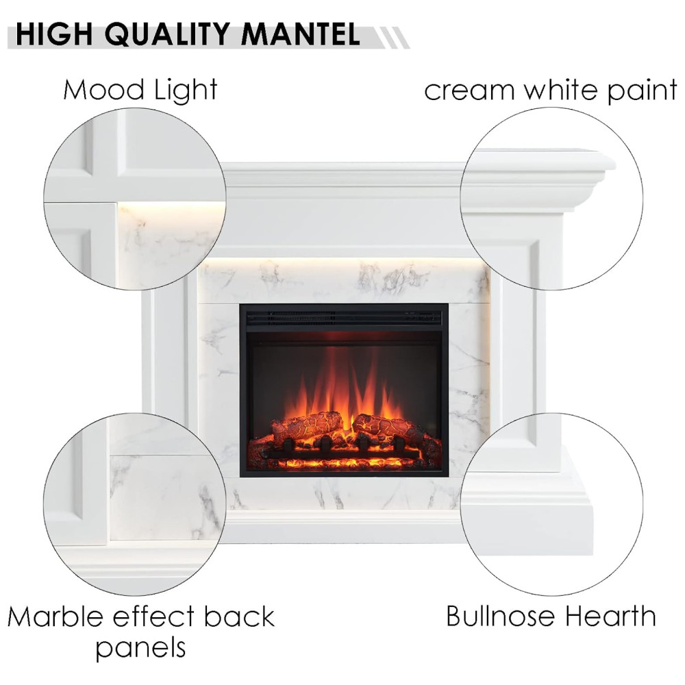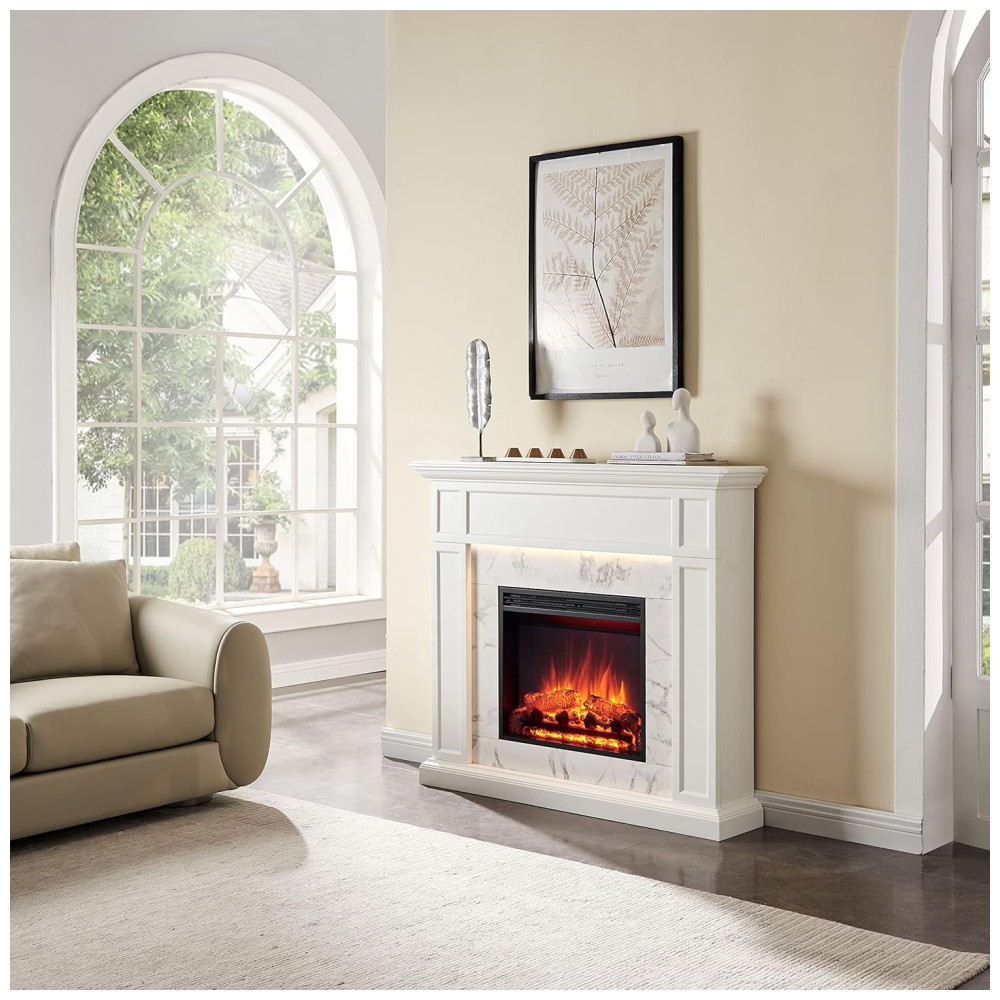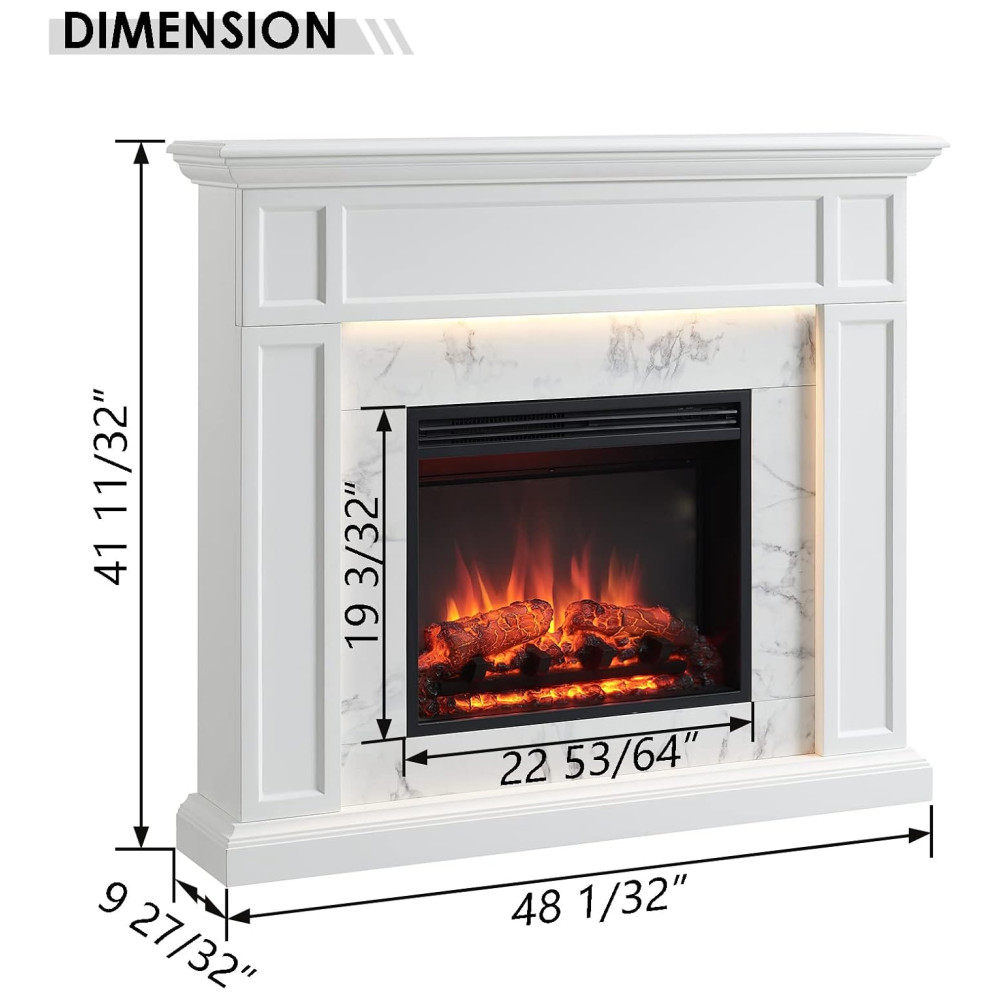 Esta lareira elétrica clássica é uma excelente adição a qualquer decoração, com dimensões gerais de 122 cm de largura x 105 cm de altura x 24,9 cm de profundidade. O produto é entregue em 2 pacotes (lareira e entorno de inserção de lareira). Seu acabamento em branco suave combina com uma veneziana simples e um efeito de veios de mármore branco neve, proporcionando um apelo elegante em qualquer ambiente.