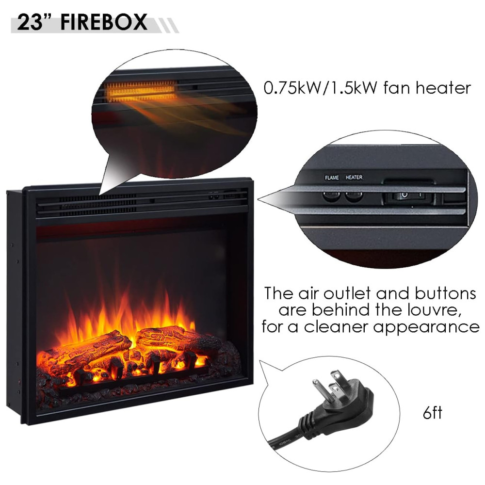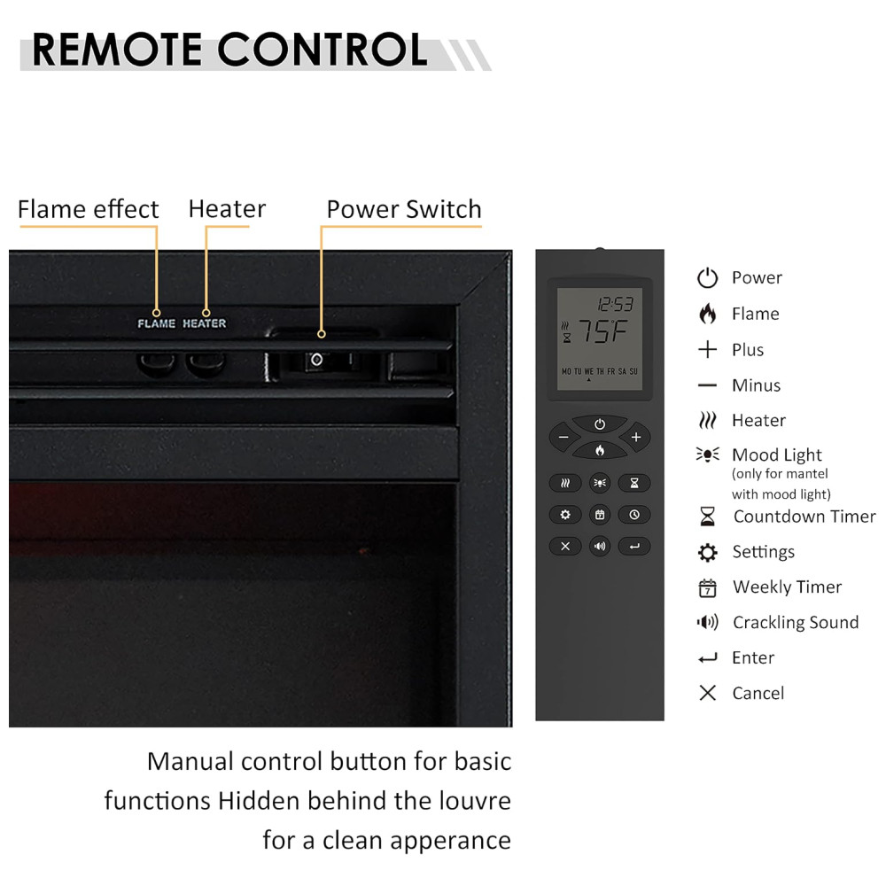 Equipada com um aquecedor silencioso, a lareira é capaz de aquecer eficazmente até 37 m² (400 pés quadrados). O temporizador integrado permite programar o funcionamento da lareira por até 9 horas. Esta lareira elétrica apresenta toras queimando de forma realista e efeitos de chamas, criando uma atmosfera aconchegante. O efeito de chama pode ser operado tanto com quanto sem aquecimento, e as várias configurações de chama permitem ajustar o brilho da luz, proporcionando um toque acolhedor e confortável ao ambiente.
