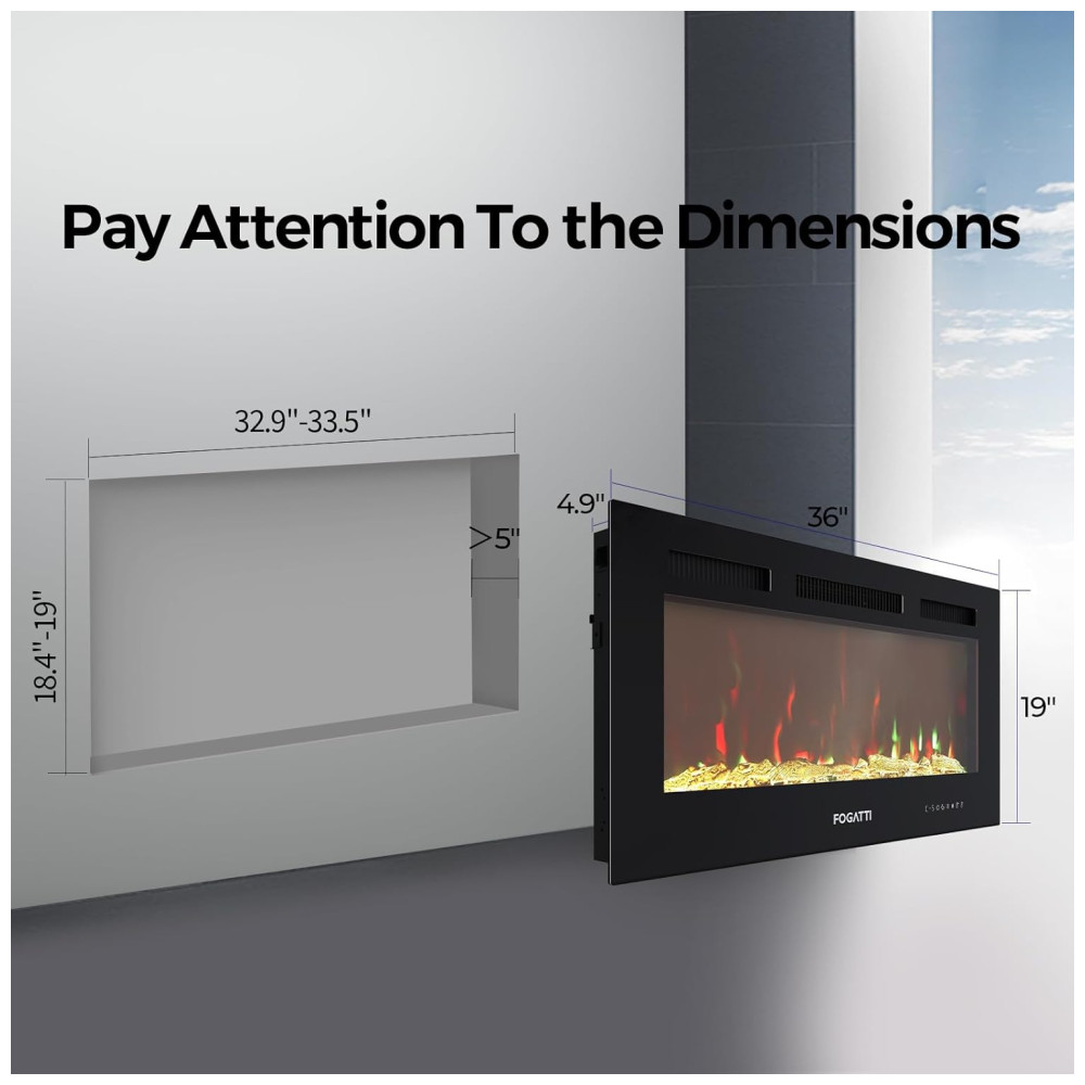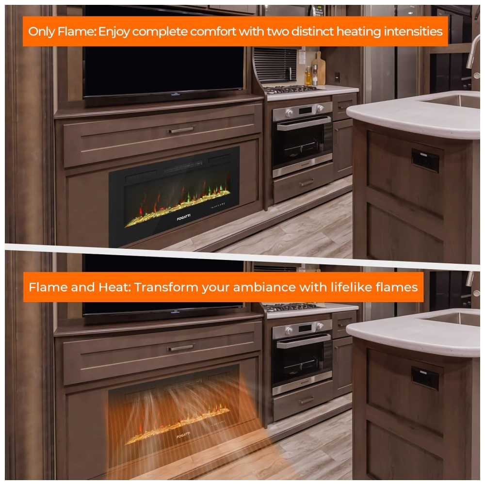 Lareira Elétrica de Embutir A48x91L com Controle Remoto e Temporizador 110V FOGATTI Preta
