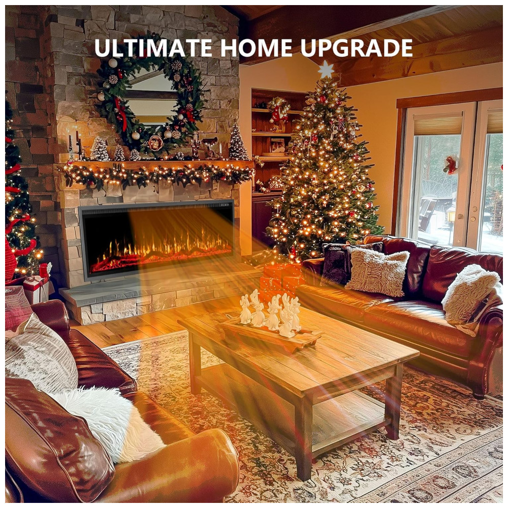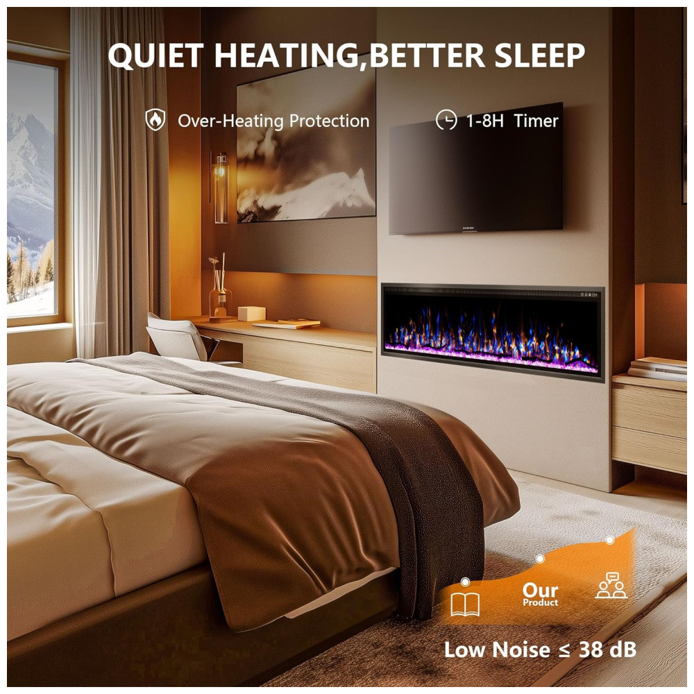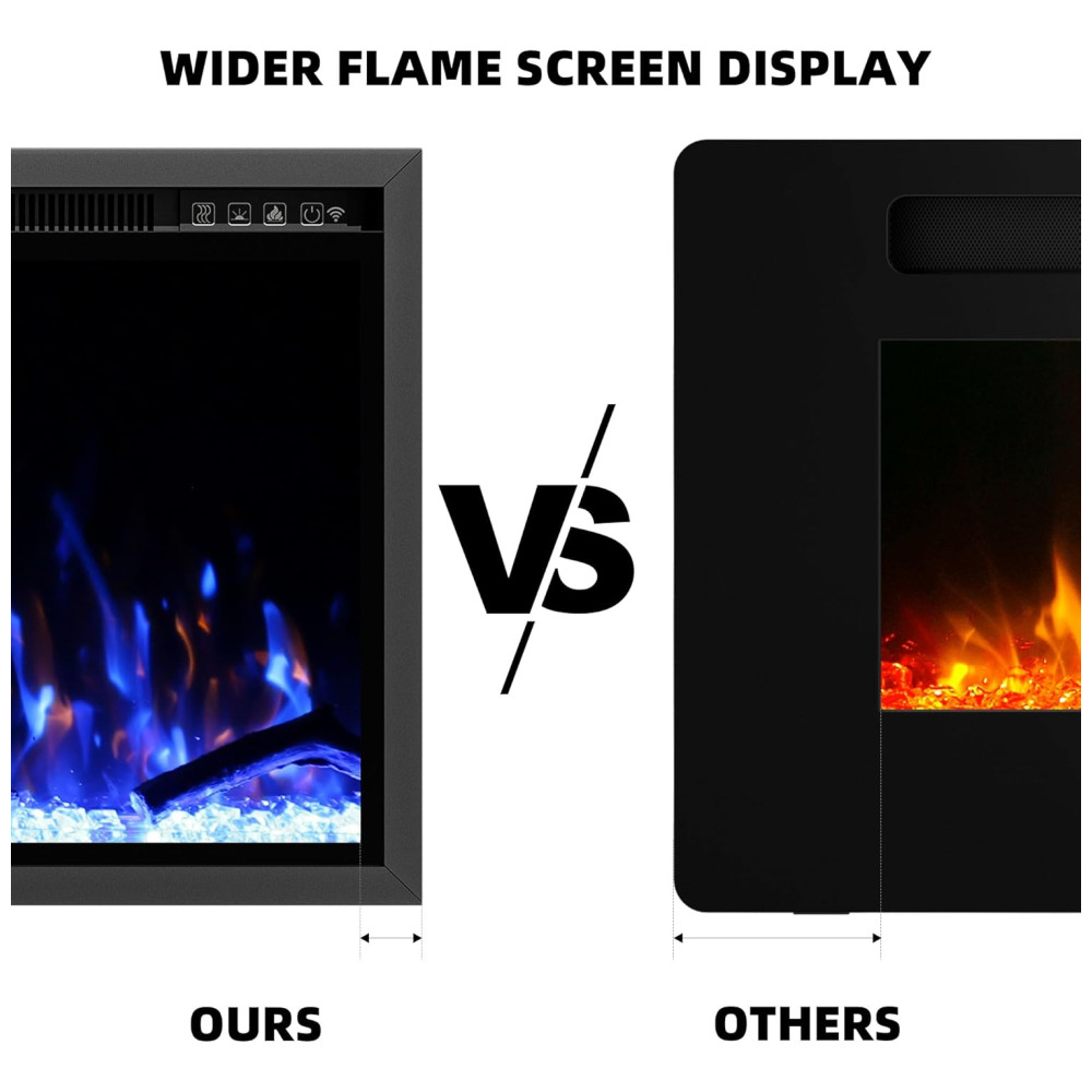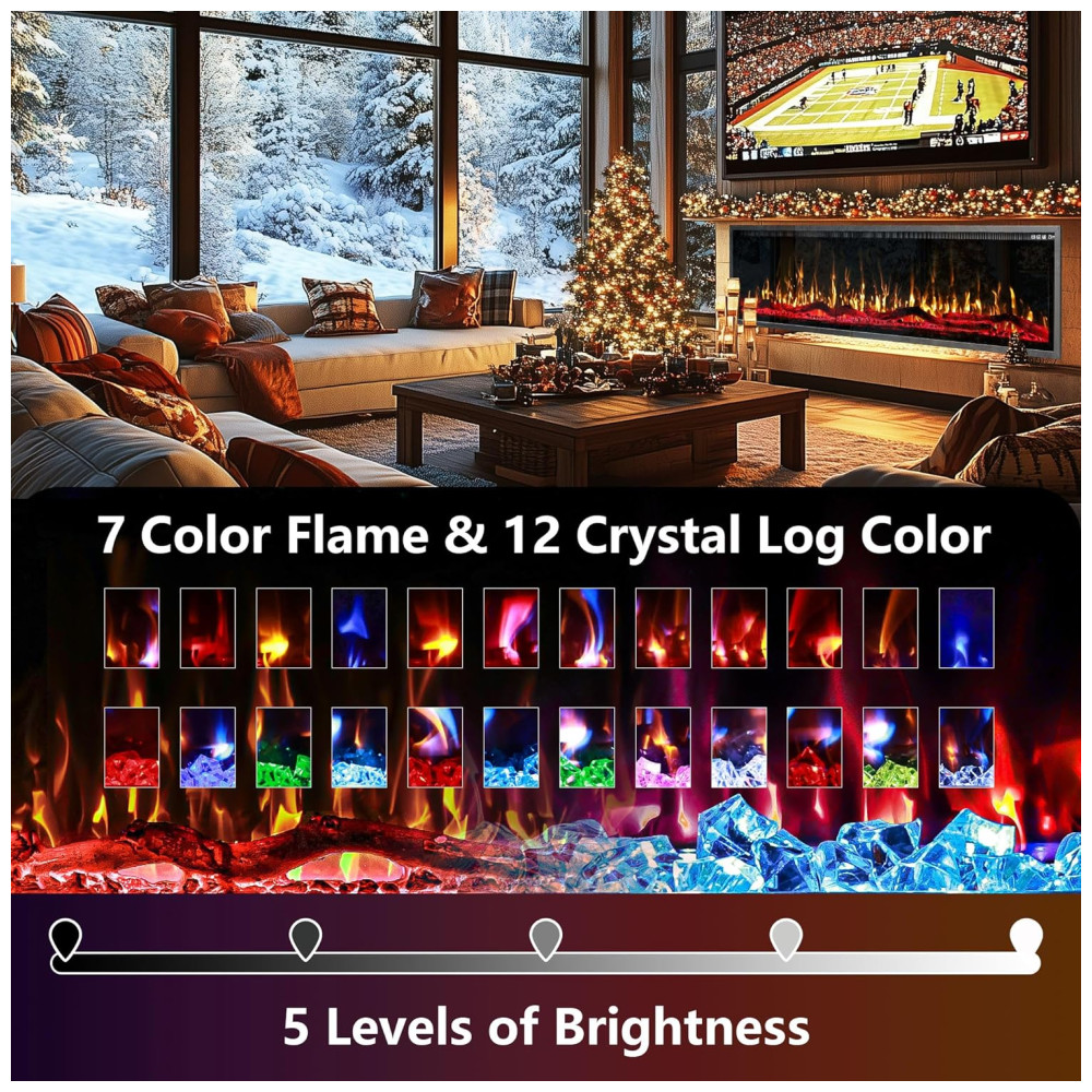 Lareira Elétrica de Embutir A49x182L cm com Controle Remoto Temporizador de 8H Toras e Cristal 110V 1500W Eueiriup Preta