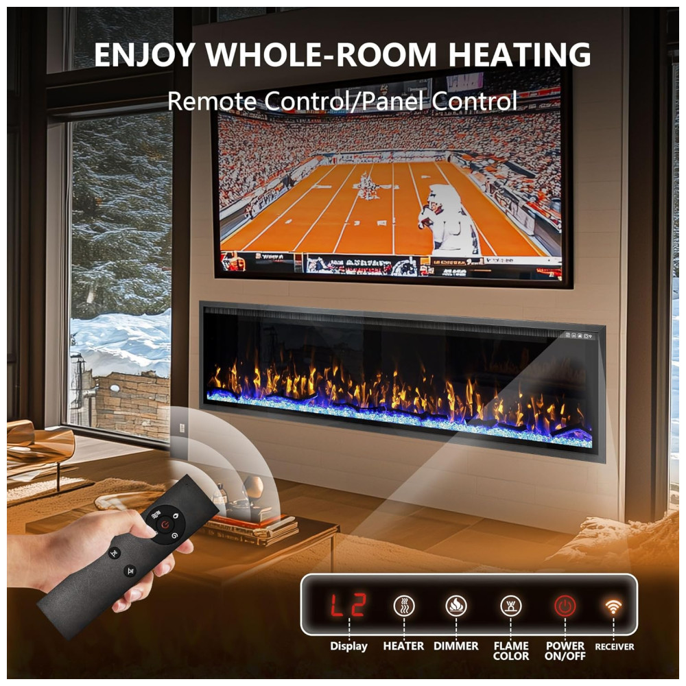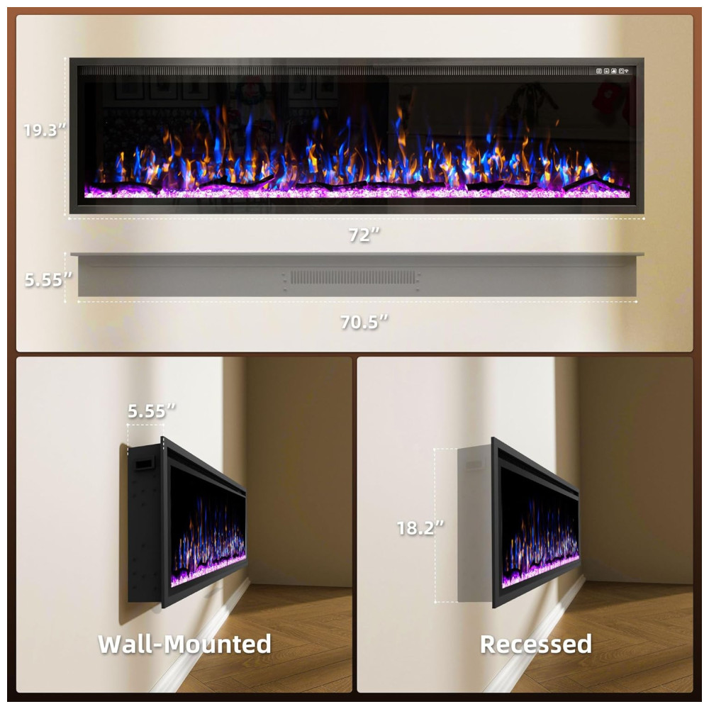 Esta lareira elétrica de 182 cm oferece várias opções de instalação: você pode montá-la na parede, embutir ou usá-la de forma independente. Com um design moderno e uma exibição de chamas realista e linear, a lareira sem aro ampliado oferece uma visão mais ampla e encantadora das chamas. Você pode personalizar ainda mais o ambiente, escolhendo entre 7 cores de chamas, 12 opções de cores para o leito de brasas, 5 níveis de intensidade de luz e 5 velocidades das chamas.