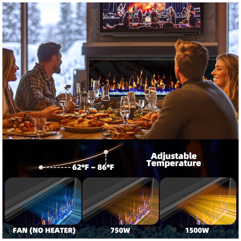 Com modos de aquecimento de 750 a 1500 W, essa lareira é capaz de aquecer eficientemente ambientes de diversos tamanhos. E se você preferir, pode desligar o aquecimento e aproveitar apenas o visual das chamas. Tanto os modos de aquecimento, quanto as configurações de chamas e o temporizador de 8 horas, podem ser ajustados facilmente através de uma tela de toque ou pelo controle remoto incluso. A lareira se desligará automaticamente quando o cronômetro alcançar o tempo programado.