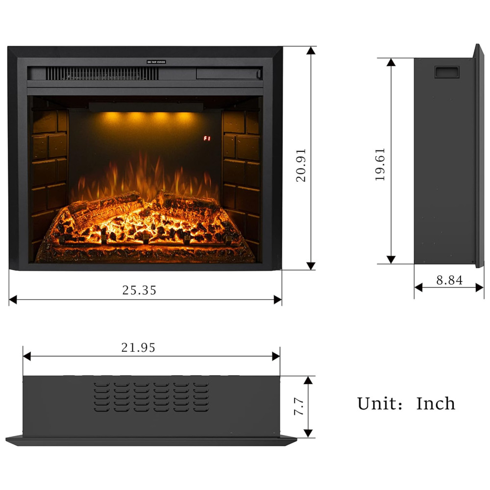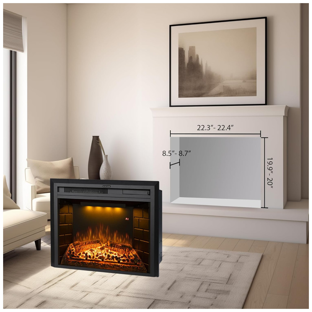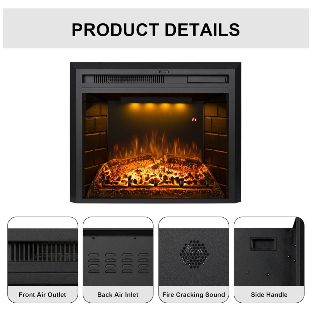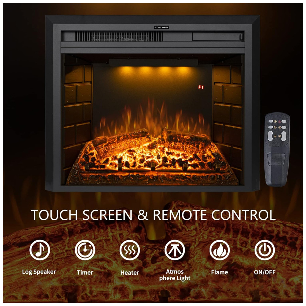 Chama Realista: O inserto de lareira elétrica embutido substitui as lareiras tradicionais com tecnologia LED, economizando energia, sem fumaça e sem cinzas. Oferece chamas realistas e efeitos de troncos ardentes, exalando calor e luz. Modo de sono com todas as luzes apagadas enquanto aquece.