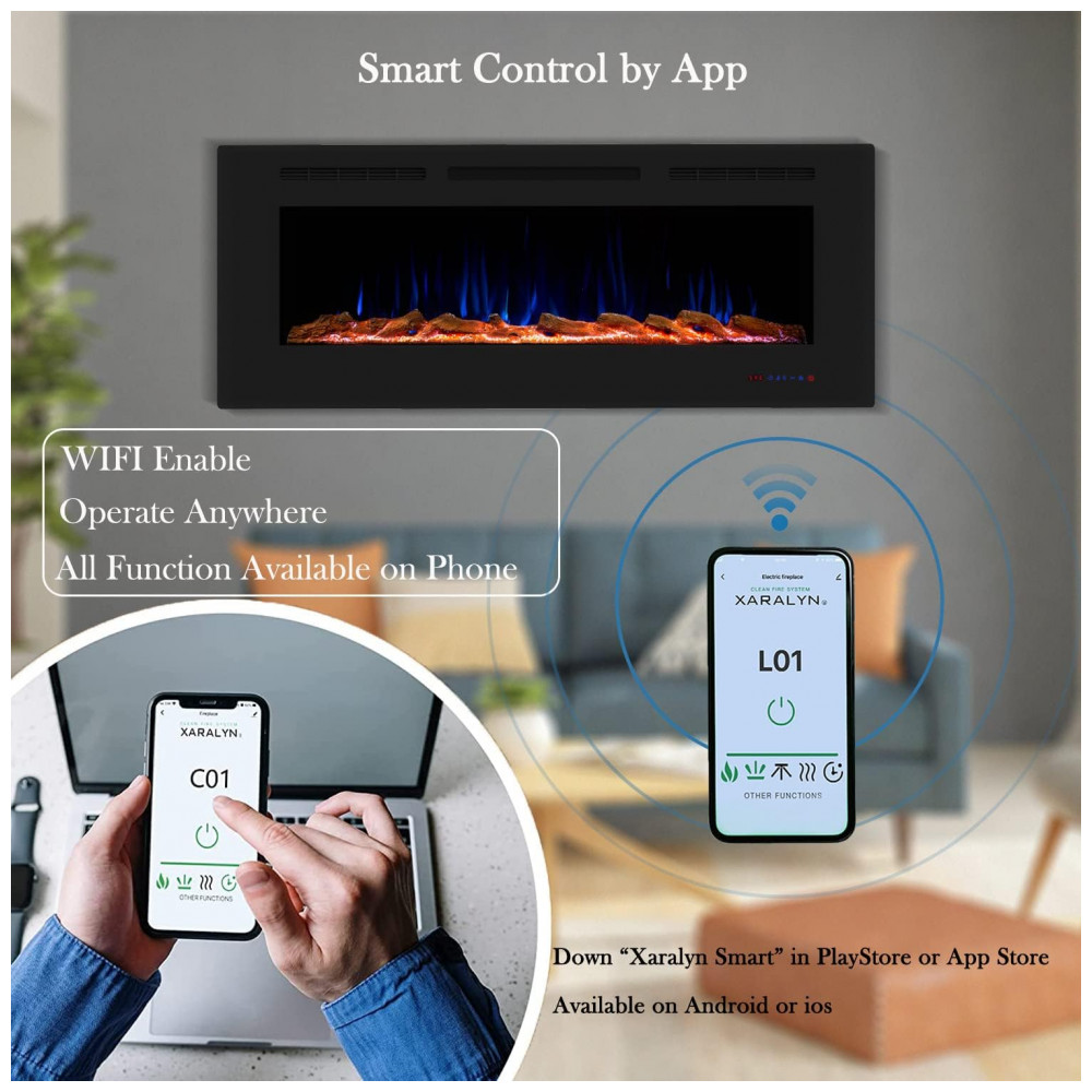 CONTROLE INTELIGENTE: Baixe o aplicativo “Xarlyn Smart” na Playstore ou Appstore para operar o aquecedor da lareira pelo aplicativo ou Alexa, permitindo controle da casa inteligente a qualquer hora e em qualquer lugar. Controle remoto básico ou por tela sensível ao toque também disponível, sem necessidade de se preocupar com a rede. Nota: Alexa controla apenas a energia.