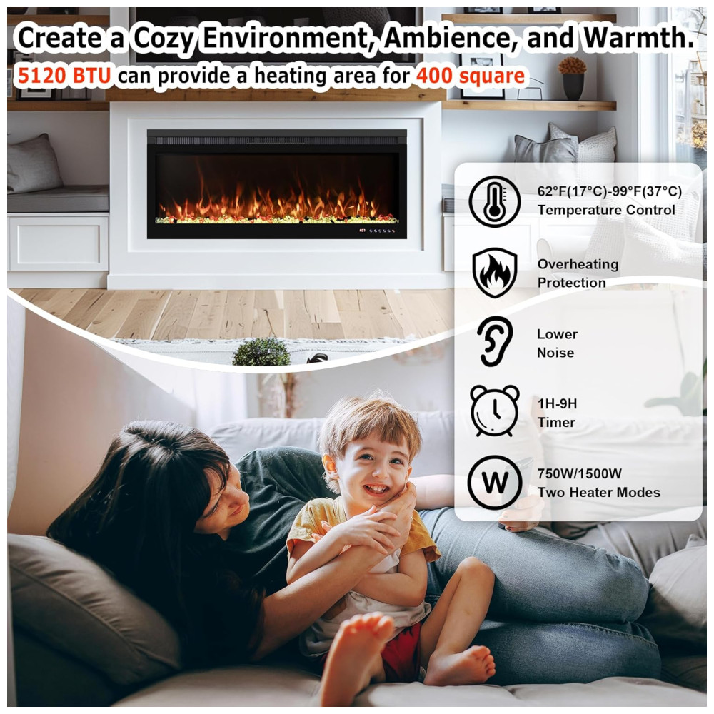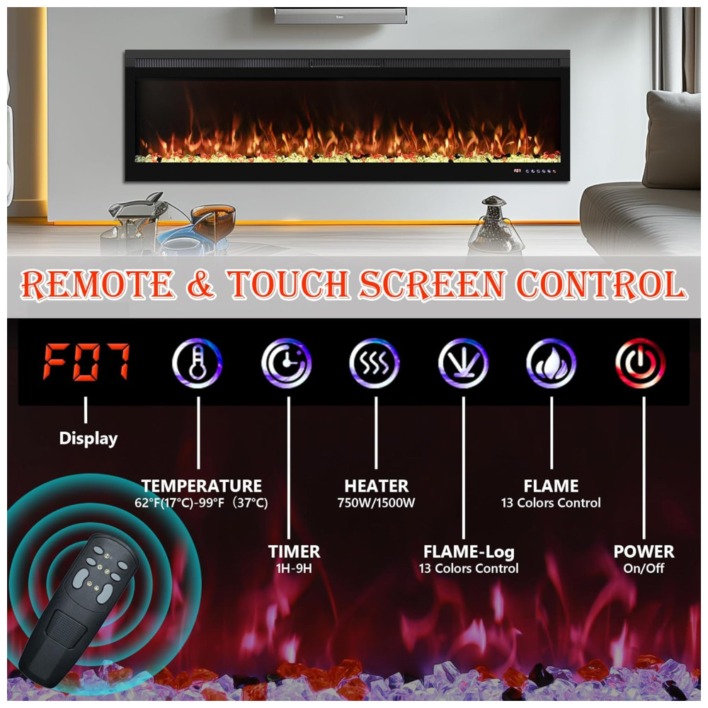 Versatilidade e Funcionalidade: Com dimensões de 152 cm, este aquecedor pode ser instalado na parede ou usado como inserção, adaptando-se às suas necessidades. Ele possui dois modos de aquecimento ajustáveis – 750 W e 1500 W – permitindo ajustar o nível de calor de acordo com a necessidade e a economia de energia. A operação é facilitada por meio de dois modos de controle: controle remoto e tela sensível ao toque.