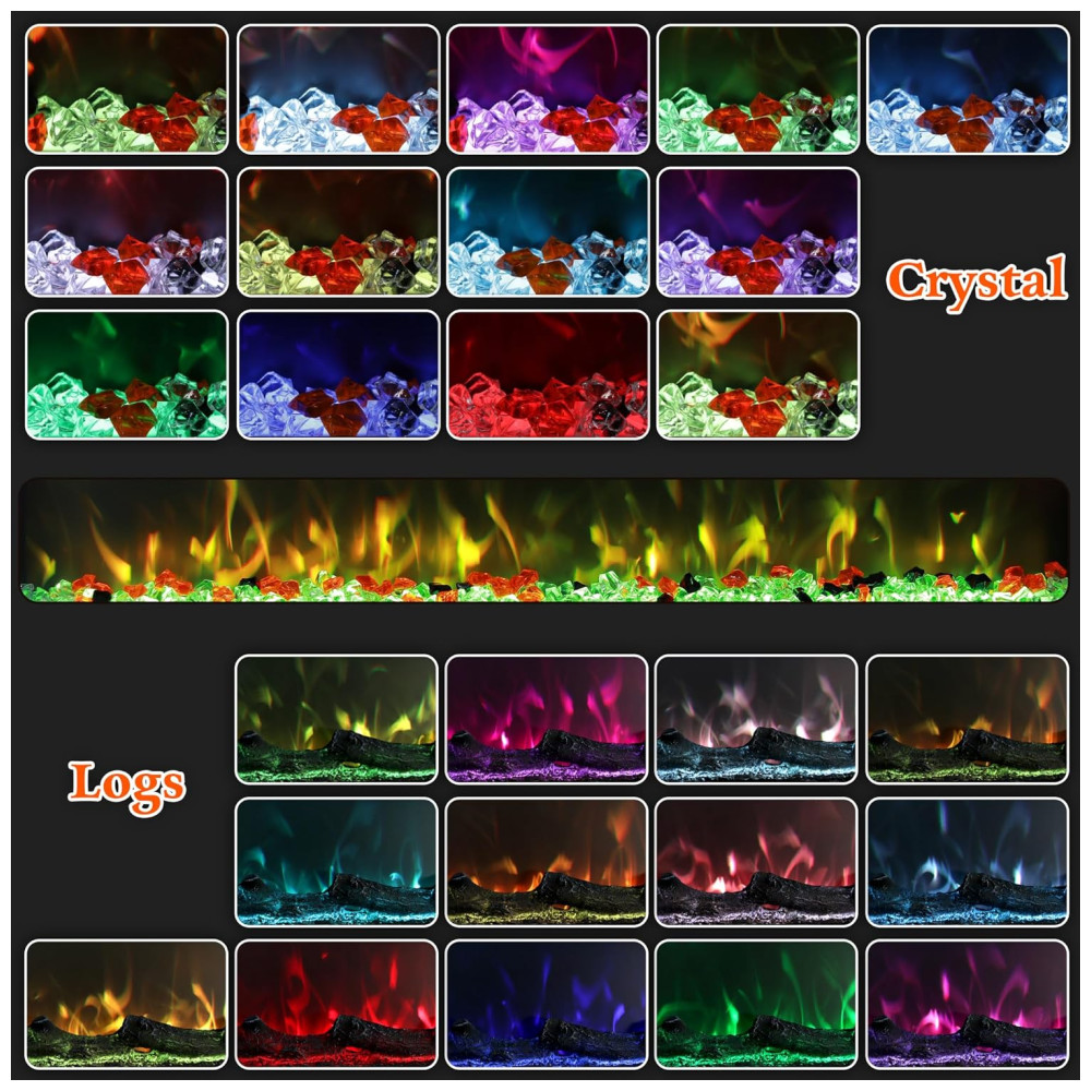 Experiência Visual e Atmosfera: A chama realista de várias cores sobe suavemente do fundo, criando uma atmosfera aconchegante e personalizada. Os efeitos de luz LED, combinados com cristais e troncos, proporcionam um efeito visual impressionante, tornando o ambiente ainda mais acolhedor.