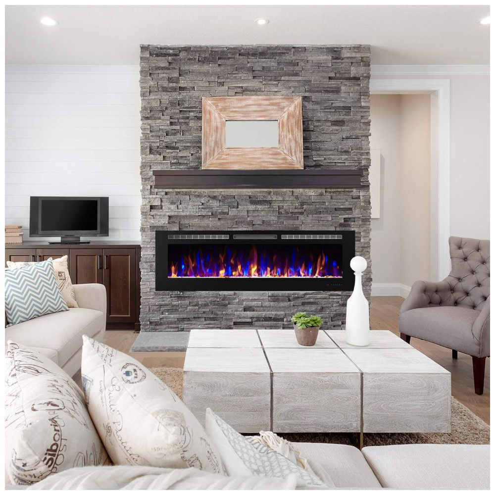 FÁCIL DE INSTALAR: As lareiras elétricas são especialmente projetadas para montagem embutida na parede. Construa uma parede com uma estrutura simples, mova os montantes existentes, use os suportes de suspensão em ambos os lados e 6 parafusos para fixar a caixa de fogo no lugar, depois fixe o painel de vidro frontal na caixa de fogo. Permite conexão direta ou com plugue, conforme detalhado no manual anexo.
