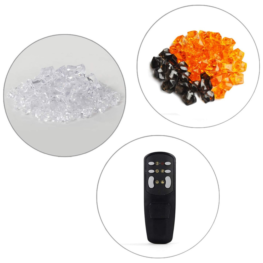 CONTROLE DE TERMOSTATO E TIMER: A chama pode ser operada com ou sem aquecimento; Com aquecimento, nível de aquecimento (750W/1500W) e temperatura (17°C a 30°C). Quando o aquecedor da lareira está ligado, o movimento do ventilador é muito suave, o ruído é baixo e agradável, e a superfície da lareira não fica quente. Um timer embutido para desligamento automático pode ser configurado de 1 a 9 horas. A tela sensível ao toque e o controle remoto (distância de controle de 3,5 metros) ajudam a controlar esta lareira elétrica com conveniência.