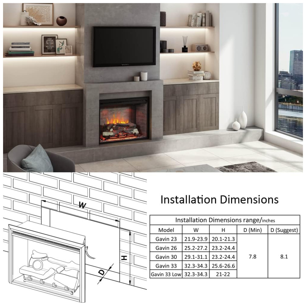 A inserção de lareira elétrica RICHFLAME Gavin é a escolha ideal para quem busca elegância e eficiência em um aquecedor. Com um controle remoto multifuncional, você pode ajustar a chama de acordo com suas preferências, facilitando a personalização do ambiente.