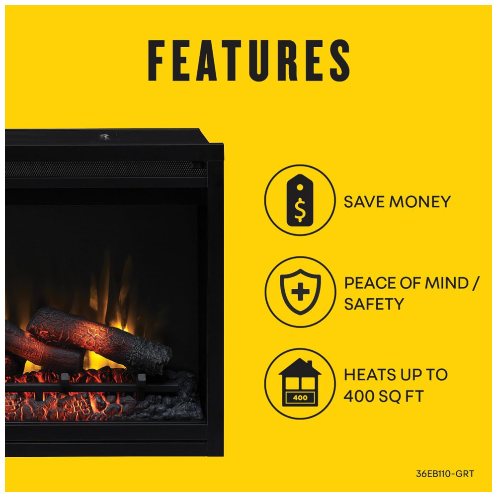 Desempenho de Aquecimento: Equipada com um aquecedor de 120 volts e 4.400 BTU, a ClassicFlame é capaz de fornecer aquecimento de zona suplementar para ambientes de até 37 m² (400 pés quadrados). O termostato montado na parede permite ajustar a temperatura do ambiente entre 16°C e 32°C, garantindo conforto personalizado.