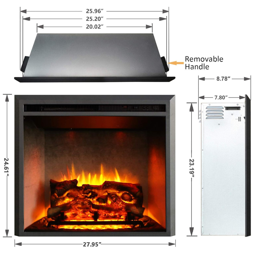 Lareira Elétrica de Embutir A62x71L cm com Controle Remoto e Som de Crepitação de Fogo 110V 1500W RICHFLAME Preta
