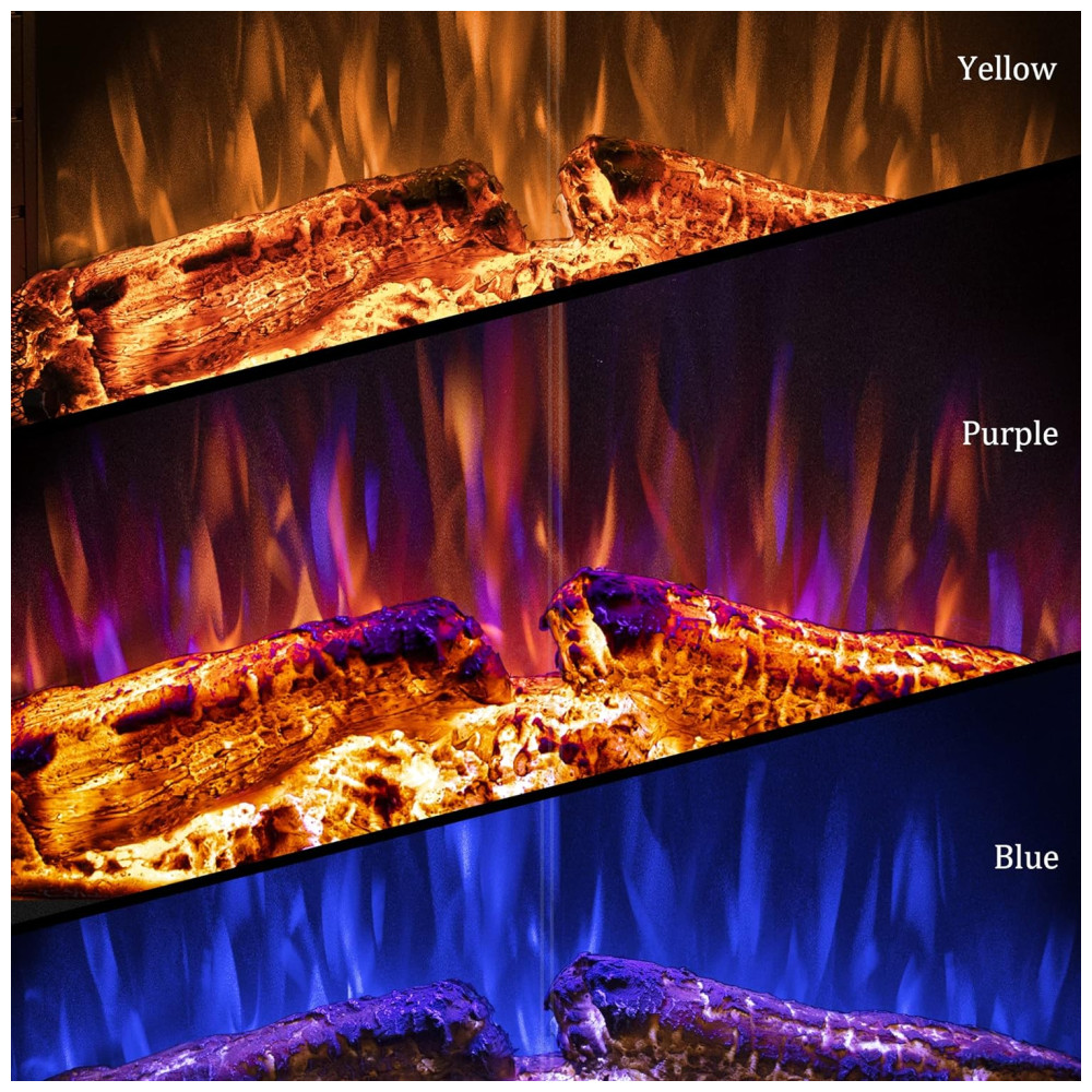 Chamas Realistas: abra a porta de vidro dupla face e observe as chamas realistas sem obstáculos. Toras inteiras tornam a chama mais atmosférica. E há três cores de chama e luz superior: laranja, azul, roxo. Vale ressaltar que a lareira possui um alto falante que simula os sons do fogo queimando