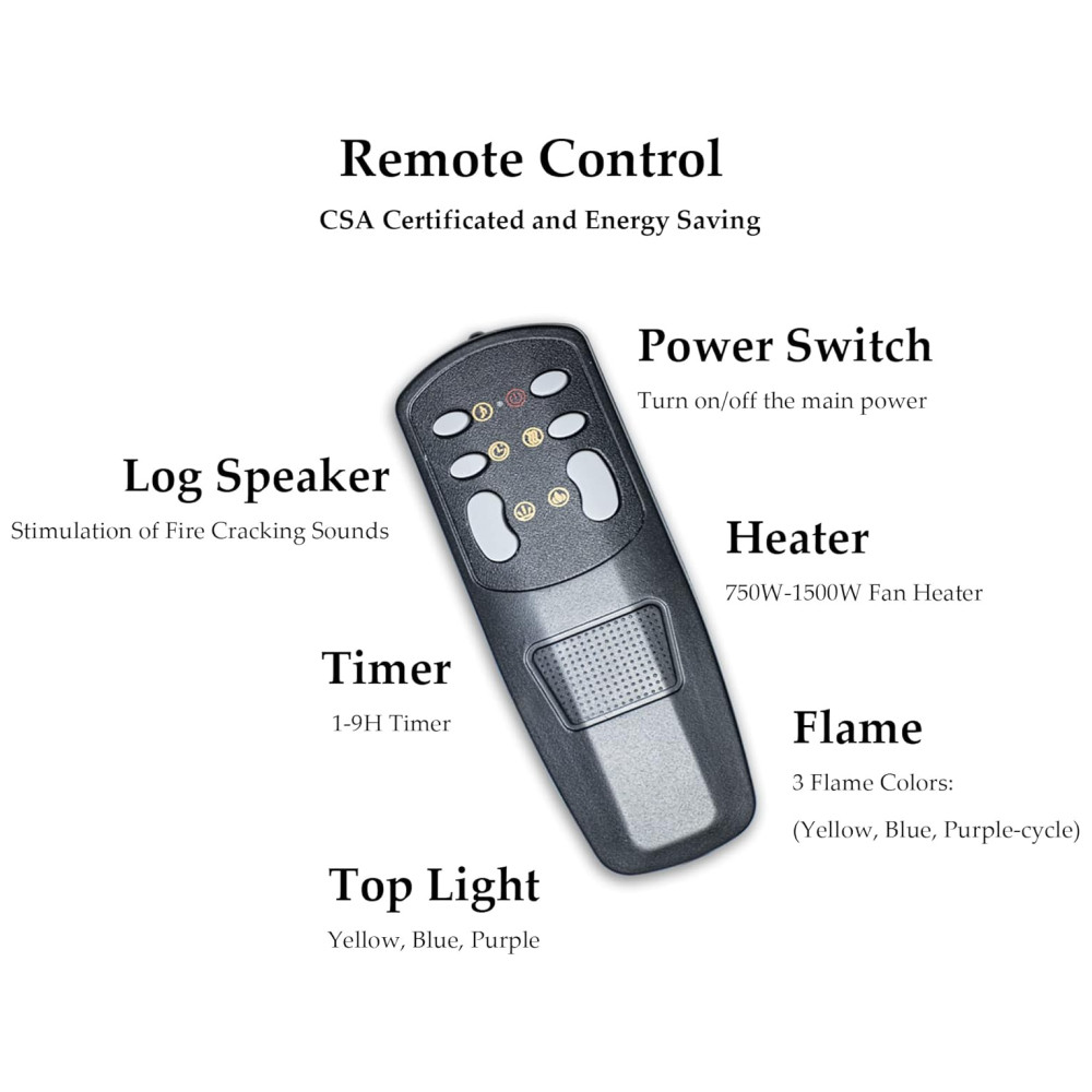 Design Moderno: parede de tijolo interior de dois lados e design de tela de malha parecem premium. A lareira é fácil de instalar e desmontar. Painel touchscreen e controle remoto para funções comuns: aquecedor, temporizador de 1 a 9 horas, chama, luz superior e alto falante de registro.