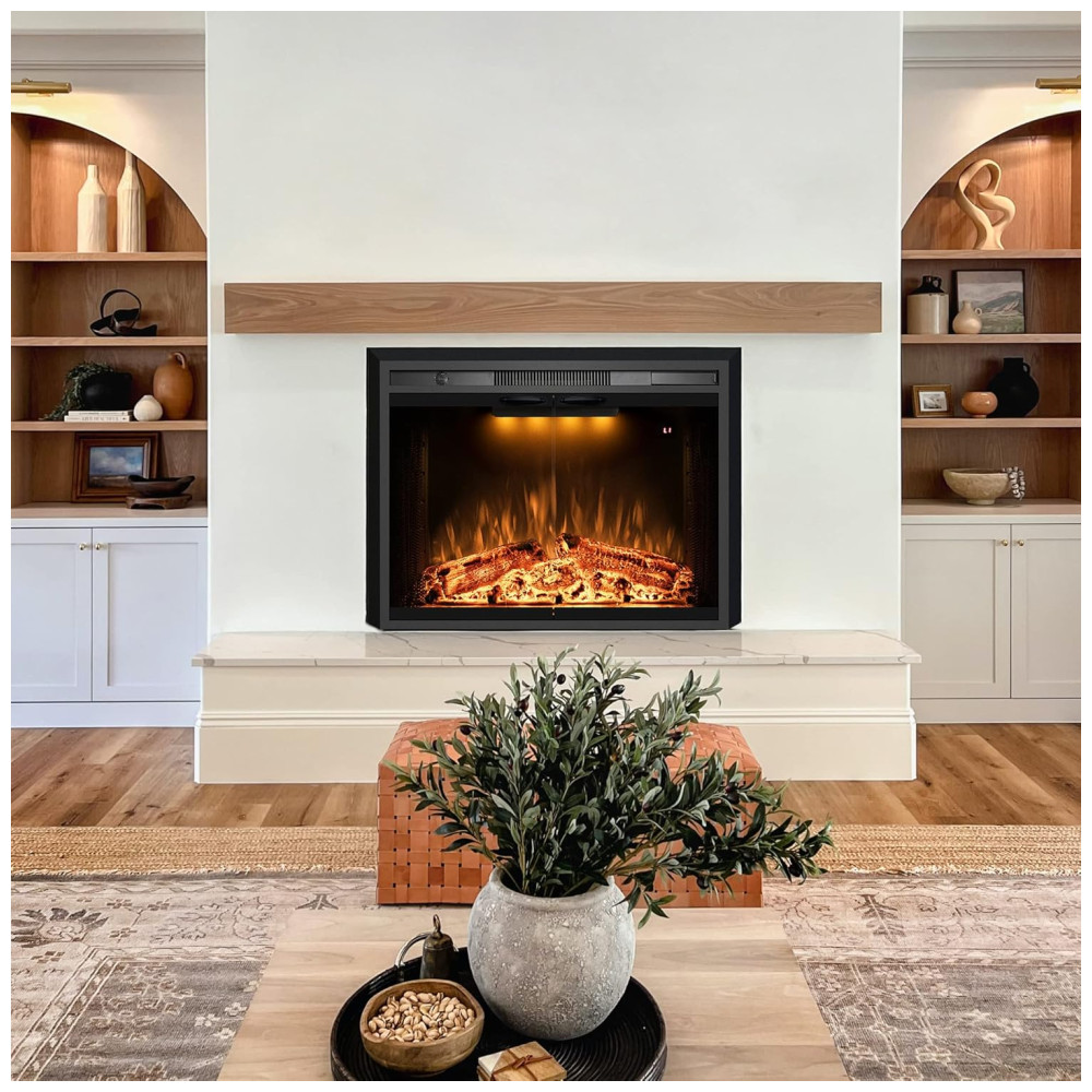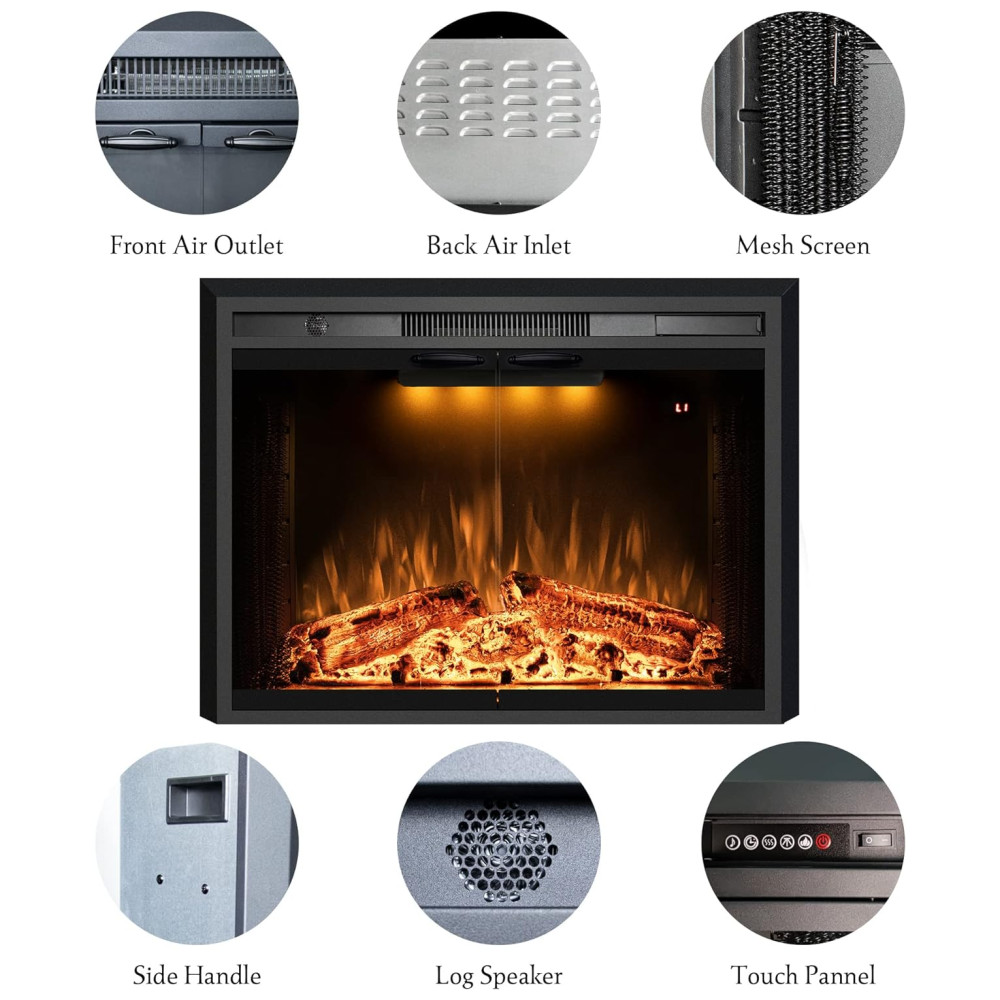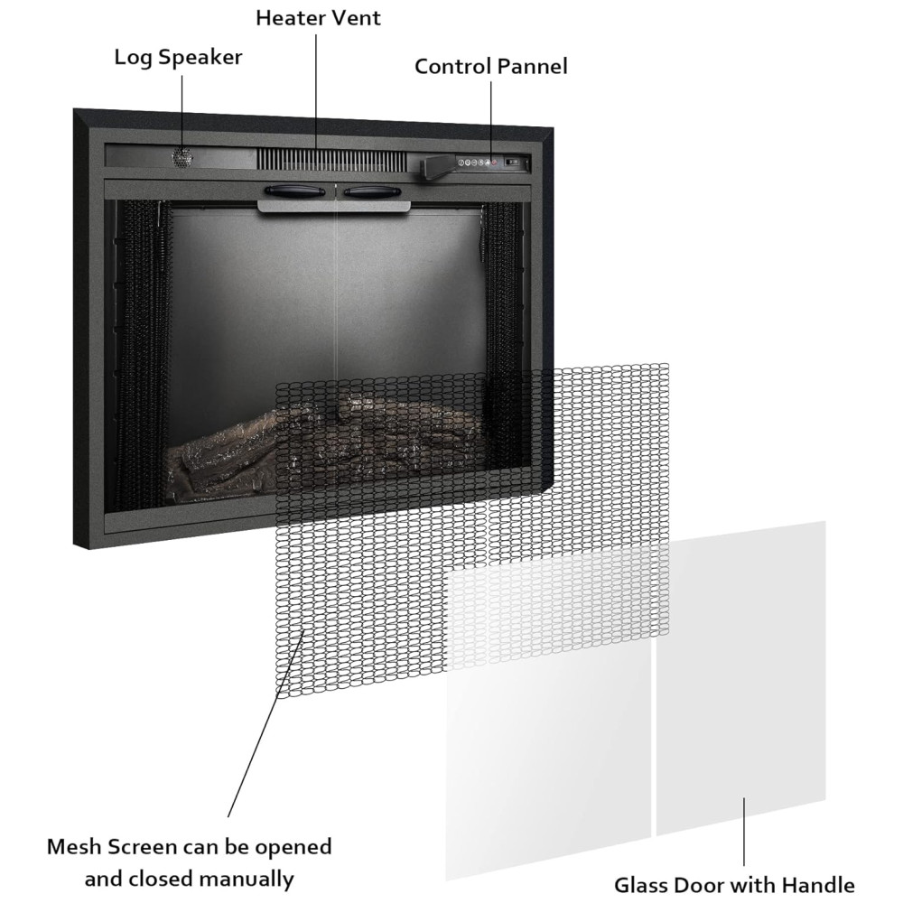 Lareira Elétrica de Embutir A62x76L com Porta de Vidro Tela de Malha Chamas Multicoloridas e Sons de Crepitação de Fogo 110V 1500W Benrocks Preta