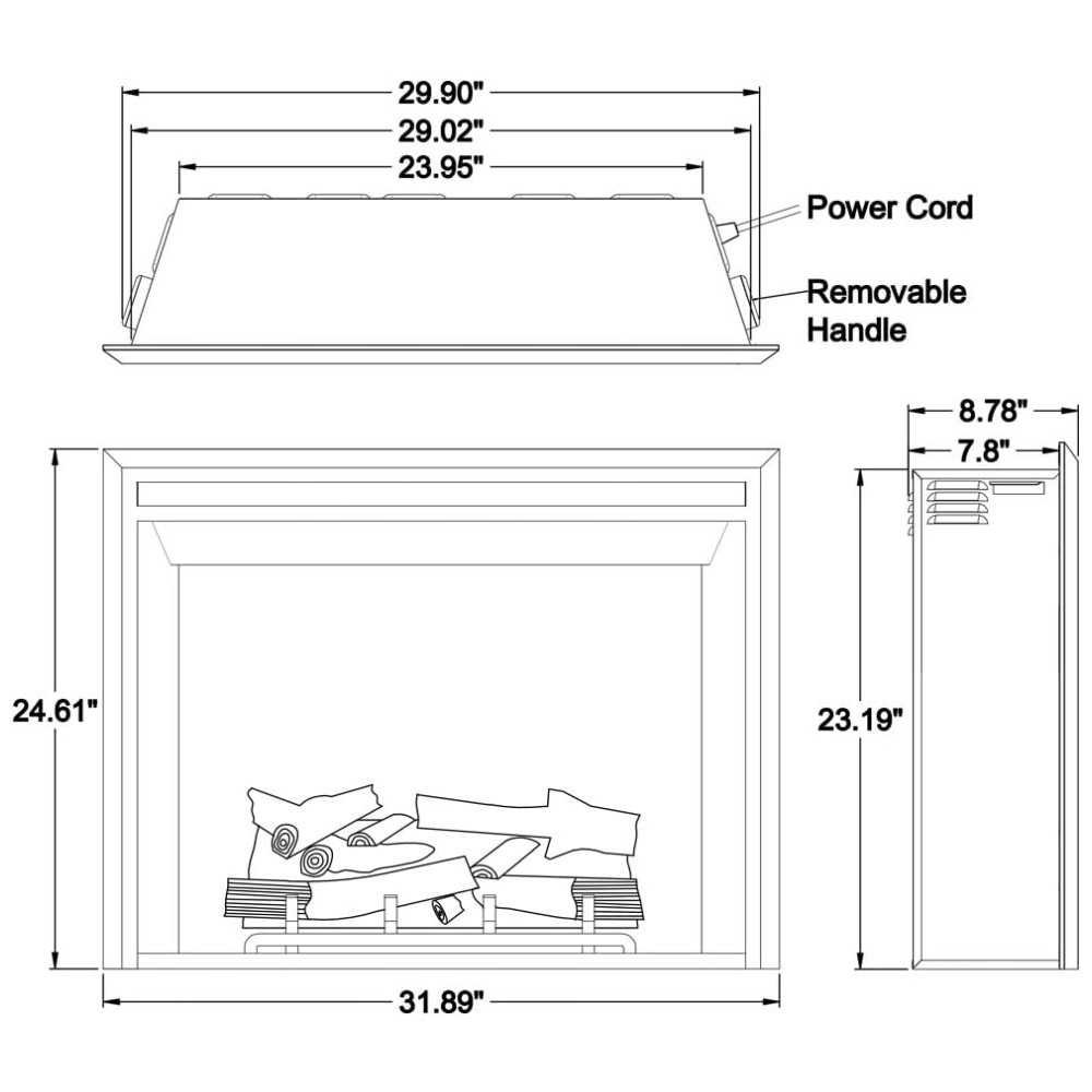Apresentando chama realista e efeito de log junto com alto falante de log real, 3 configurações de chama criam uma exibição de chama realista e variada que imita a queima de um incêndio real. Painéis de tijolos laterais dão um acabamento realista da unidade e um conjunto de toras realistas e um brilho de cama de brasa como toras de madeira reais tanto de dia quanto de noite.