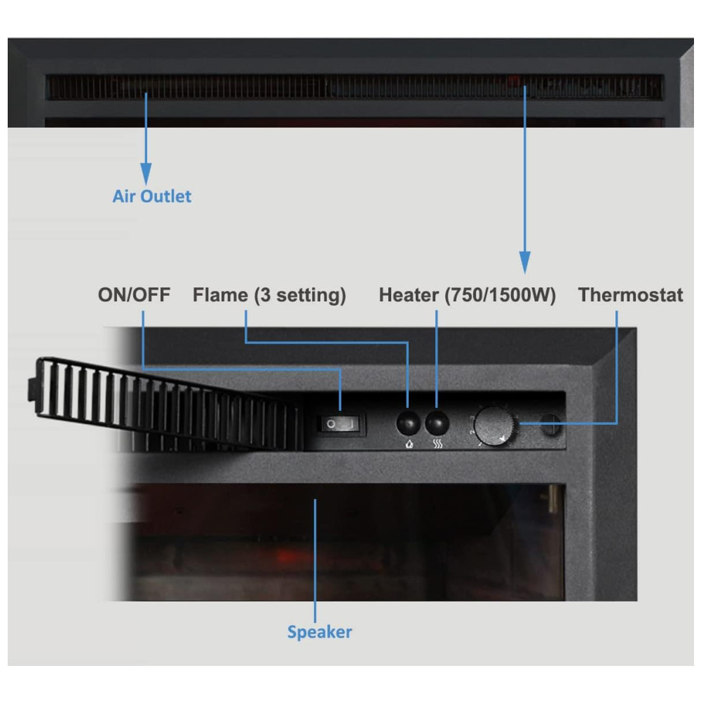Lareira Elétrica de Embutir A62x81L com Controle Remoto e Crepitação de Som 110V 1500W PuraFlame Preta