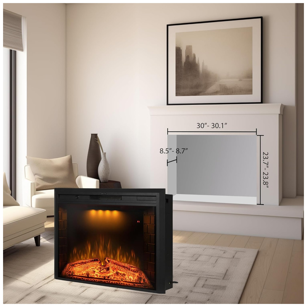 Dimensão total 83,82 centímetros de largura X 22,4 centímetros de profundidade X 62,8 centímetros de altura. Dimensão da inserção 75,17 centímetros de largura X 19,56 centímetros de profundidade X 59,5 centímetros de altura. Esta lareira é fácil de instalar, o painel de vidro temperado, a aparência elegante e o estilo simples combinam perfeitamente com armários de TV, paredes de lareira, estantes, entre outros.