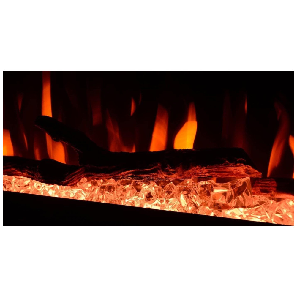 Lenha Falsa, Madeira Flutuante e Cristais Incluídos: Este conjunto inclui lenhas falsas e cristais para criar uma sensação autêntica. Opera com 1500 watts e uma voltagem de 120V. Recomenda-se que esta lareira seja posicionada pelo menos 20 cm abaixo do teto ou de qualquer item montado acima da lareira.