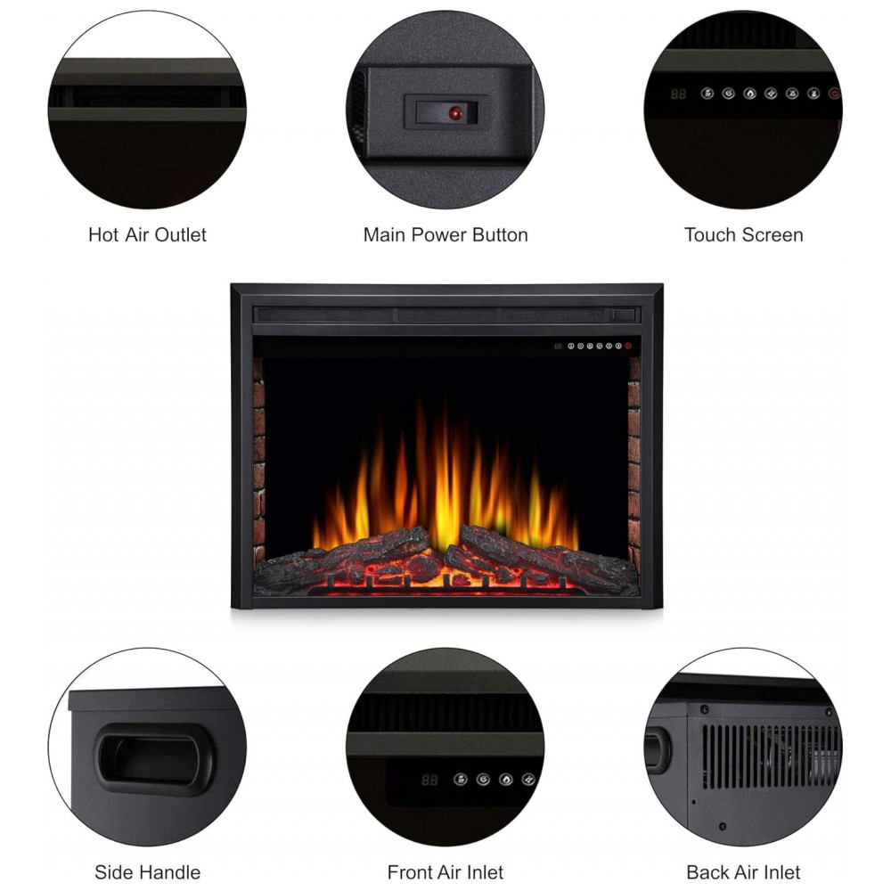 Gorgeous Realistic Dancing Flames e Efeito de Troncos em Combustão: A lareira possui 5 cores para chama e troncos em combustão; 5 velocidades de chama; 5 níveis de brilho de chama; Design automático especial (a cor e o brilho da chama mudam automaticamente); Controle de timer de 1 a 8 horas; Controle remoto de 8 m; Estilo retro com parede de tijolos no interior, ideal para substituir lareiras antigas. Perfeita para casa, escritório ou qualquer tipo de ocasião.