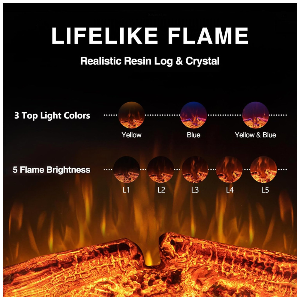 Chama Realista: A lareira elétrica embutida com aquecimento substitui as lareiras tradicionais com tecnologia LED econômica, sem fumaça e sem cinzas. Chamas realistas e efeitos de lenha queimando exalam calor e luz. Modos de sono com todas as luzes apagadas enquanto aquece.