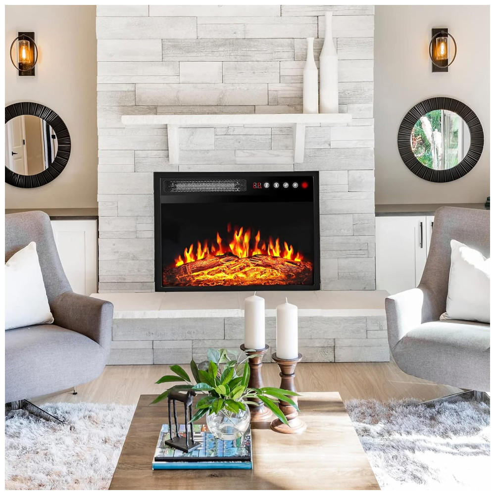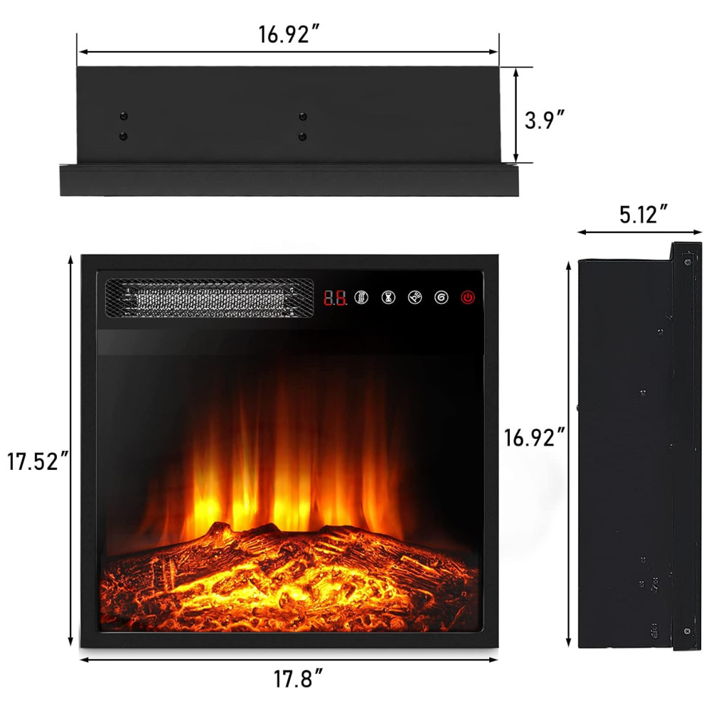 Lareira Elétrica de Embutir Compacta Portátil A44x45L cm com 5 Níveis de Brilho Temporizador Controle Remoto e Digital 110V 1500W BOSSIN Preta