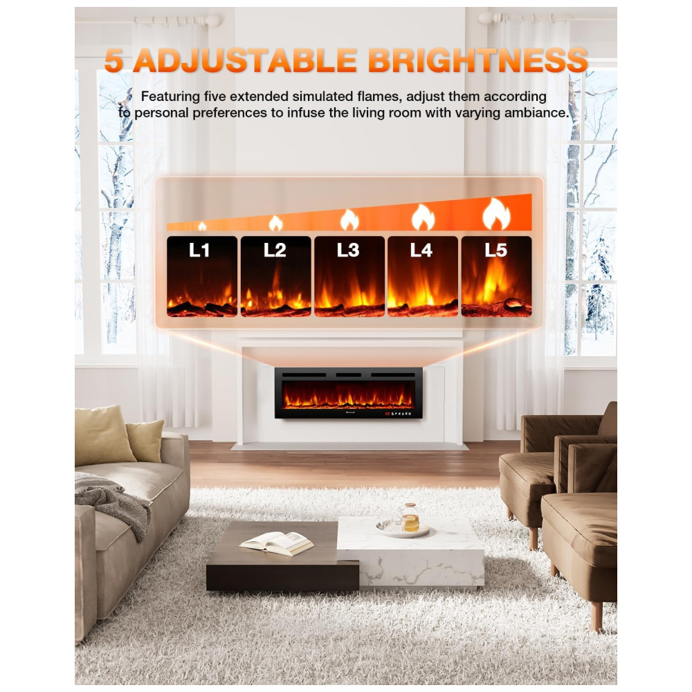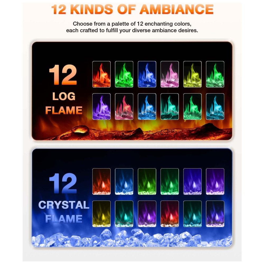 A lareira elétrica VISVEIL é a escolha perfeita para adicionar calor e estilo ao seu ambiente. Com cinco níveis de brilho ajustáveis e uma variedade de chamas realistas, ela oferece 12 tipos de chamas de toras e 12 tipos de chamas de cristal, permitindo criar a atmosfera ideal para qualquer ocasião.
