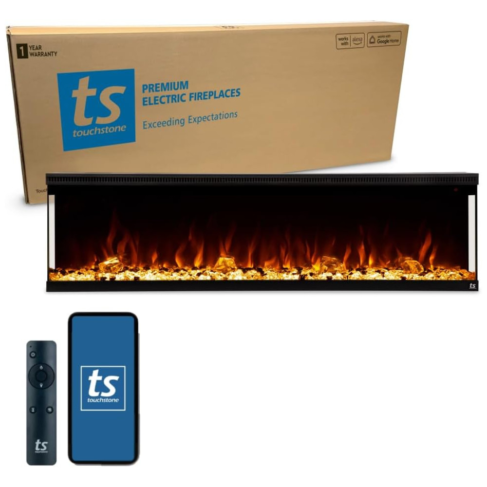 Lareira Elétrica de Embutir L182 x A44 com WiFi e 60 Combinações de Cores 110V 750W 1500W Touchstone Preta