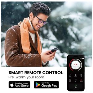 A lareira elétrica Silonns é feita em aço laminado e oferece um potente aquecimento de 5300 BTU, ideal para aquecer eficientemente um ambiente inteiro. Com uma faixa de temperatura ajustável de 16°C a 30°C, você pode personalizar o calor de acordo com suas necessidades de conforto. Os controles são simples e intuitivos, facilitando o uso do aparelho. Além disso, a lareira pode ser controlada por um aplicativo inteligente, permitindo que você a ajuste a qualquer hora e em qualquer lugar para pré-aquecer seu ambiente. Você também pode operá-la com o controle remoto incluído ou diretamente pelo painel de controle, oferecendo máxima conveniência e flexibilidade.