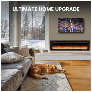 Lareira Elétrica de Embutir Ultrafina A43x127L cm com 20 Cores de Chama Saída de Calor de 5300 BTU Temporizador Controle Remoto e APP 110V 1400W Silonn Preta