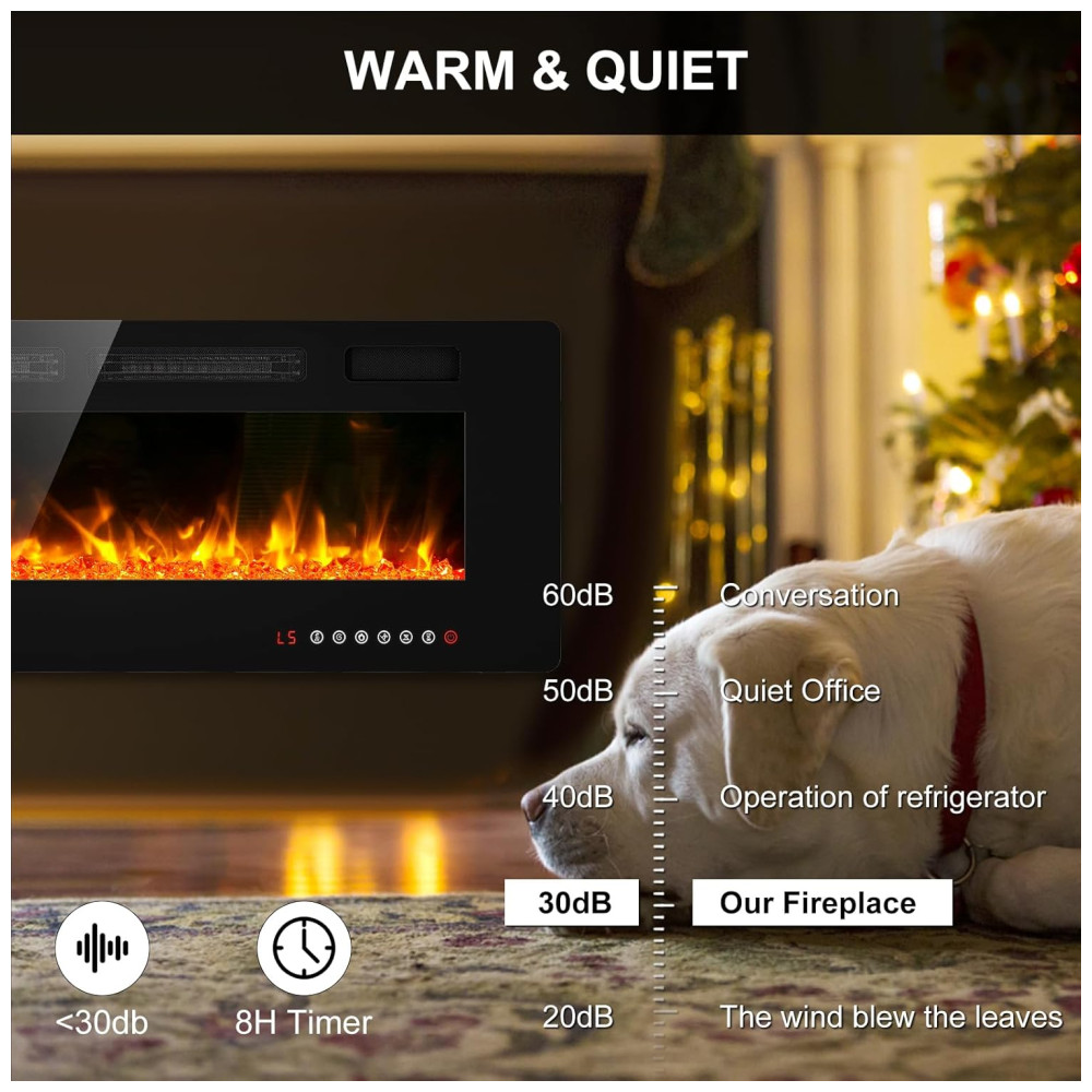 Design Inteligente: 12 cores de chama e 12 cores de leito de chama em LED; 5 velocidades de chama; 5 níveis de brilho de chama; controle de timer de 0 a 8 horas. Você pode personalizar a temperatura e o ambiente da sua sala de estar com um simples toque na tela ou com o controle remoto conveniente do outro lado da sala!