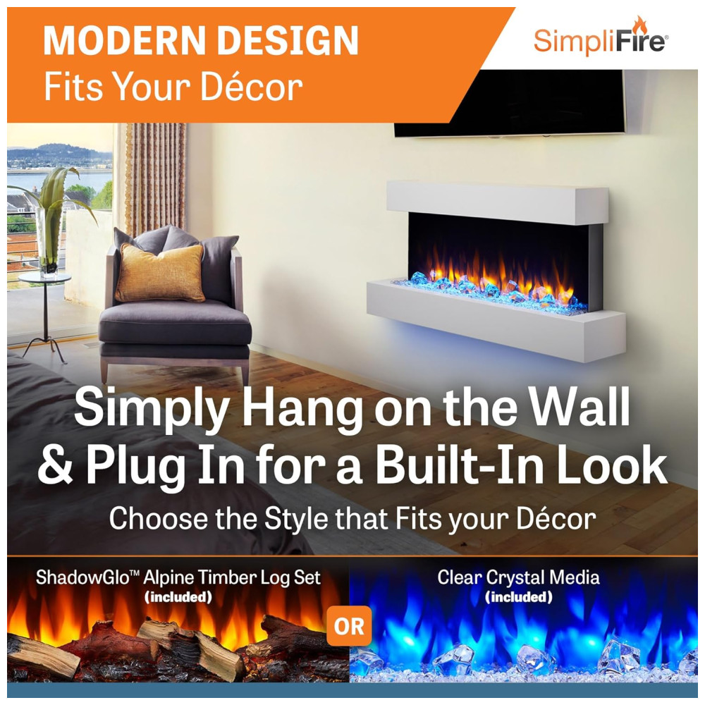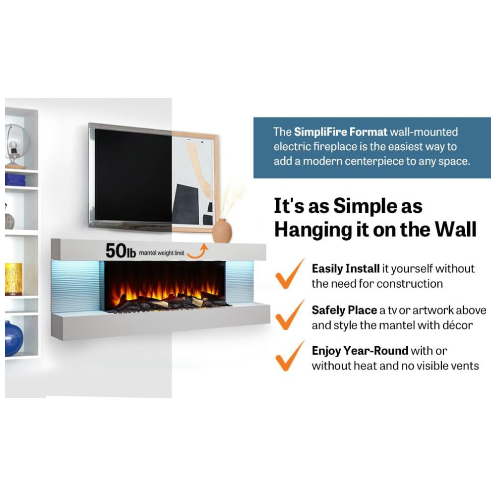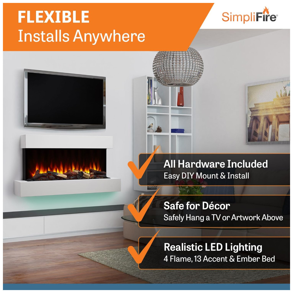 Lareira Elétrica de Parede Flutuante A59x110L cm com Controle Remoto 110V SIMPLIFIRE Branca