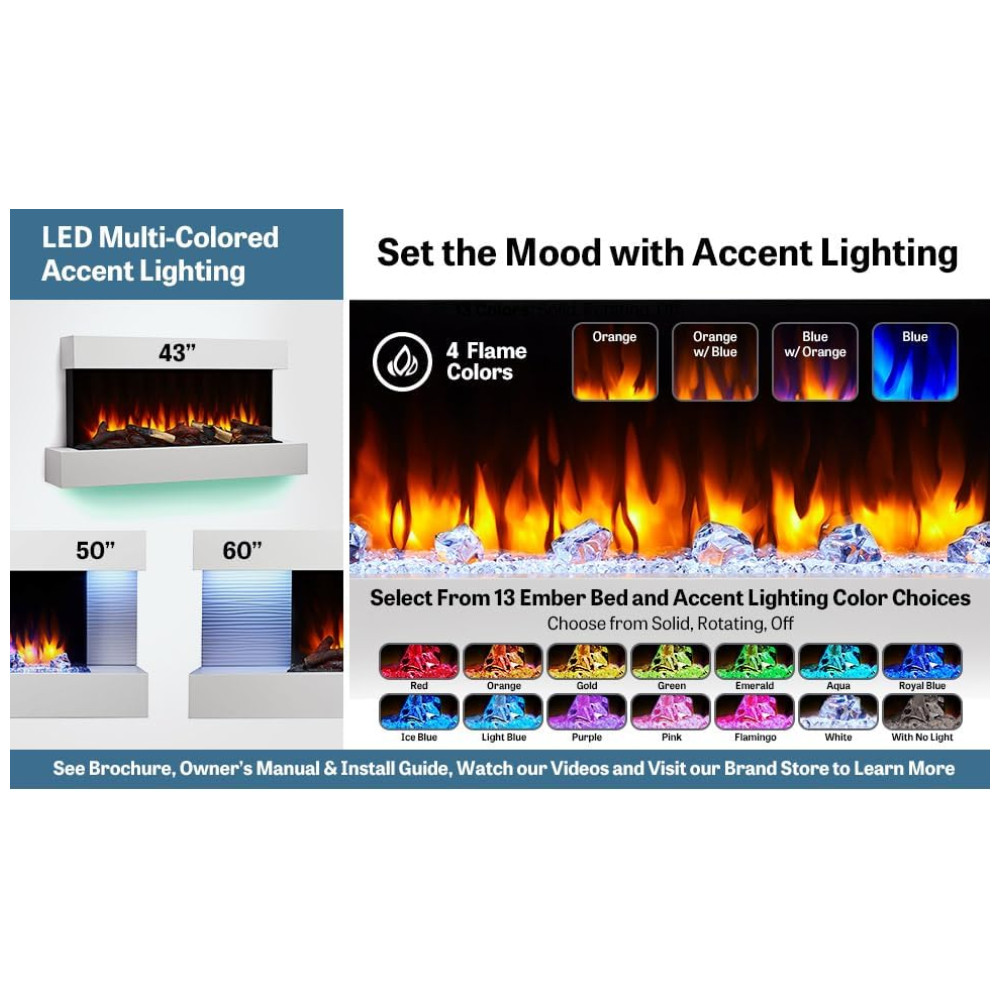 Este produto apresenta um design de montagem na parede que garante uma instalação rápida e fácil, tornando-o ideal para quase qualquer espaço. Com quatro cores de chama, 14 opções de leito de brasas e 14 opções de luz de destaque, oferece 784 combinações possíveis de exibição, permitindo uma personalização completa da sua atmosfera.