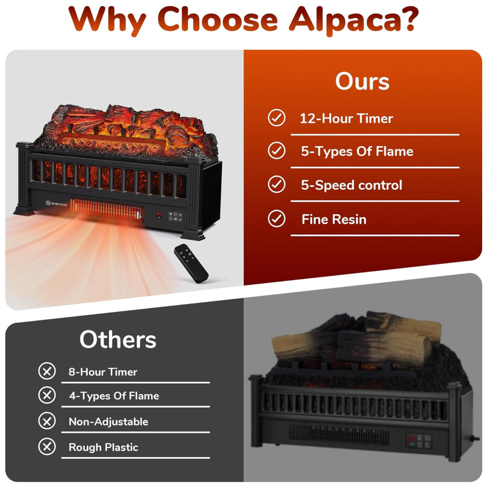Lareira Elétrica Ecológica 20″ 50 cm com Controle Remoto Proteção Contra Superaquecimento Cores de Chama Ajustáveis e Temporizador 110V 1500W Alpaca IH-2093N Preta