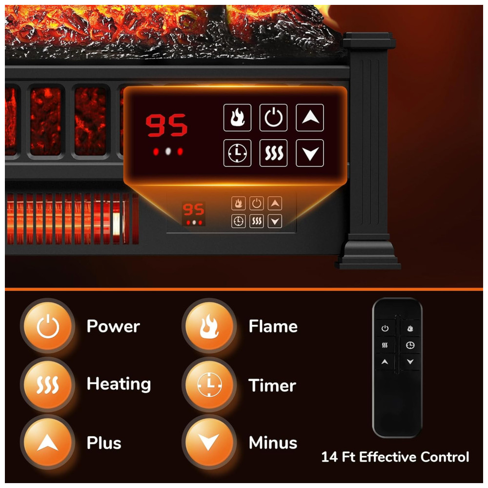 Este aquecedor de lareira elétrica utiliza tecnologia de aquecimento infravermelho com tubo de quartzo, oferecendo até 1500 W de potência para aquecer rapidamente o ambiente em dias frios. Ele apresenta uma chama realista com toras de resina que imitam a aparência de bétula, proporcionando 5 opções de chama e 5 ajustes de velocidade do ar para criar um ambiente romântico e aconchegante.