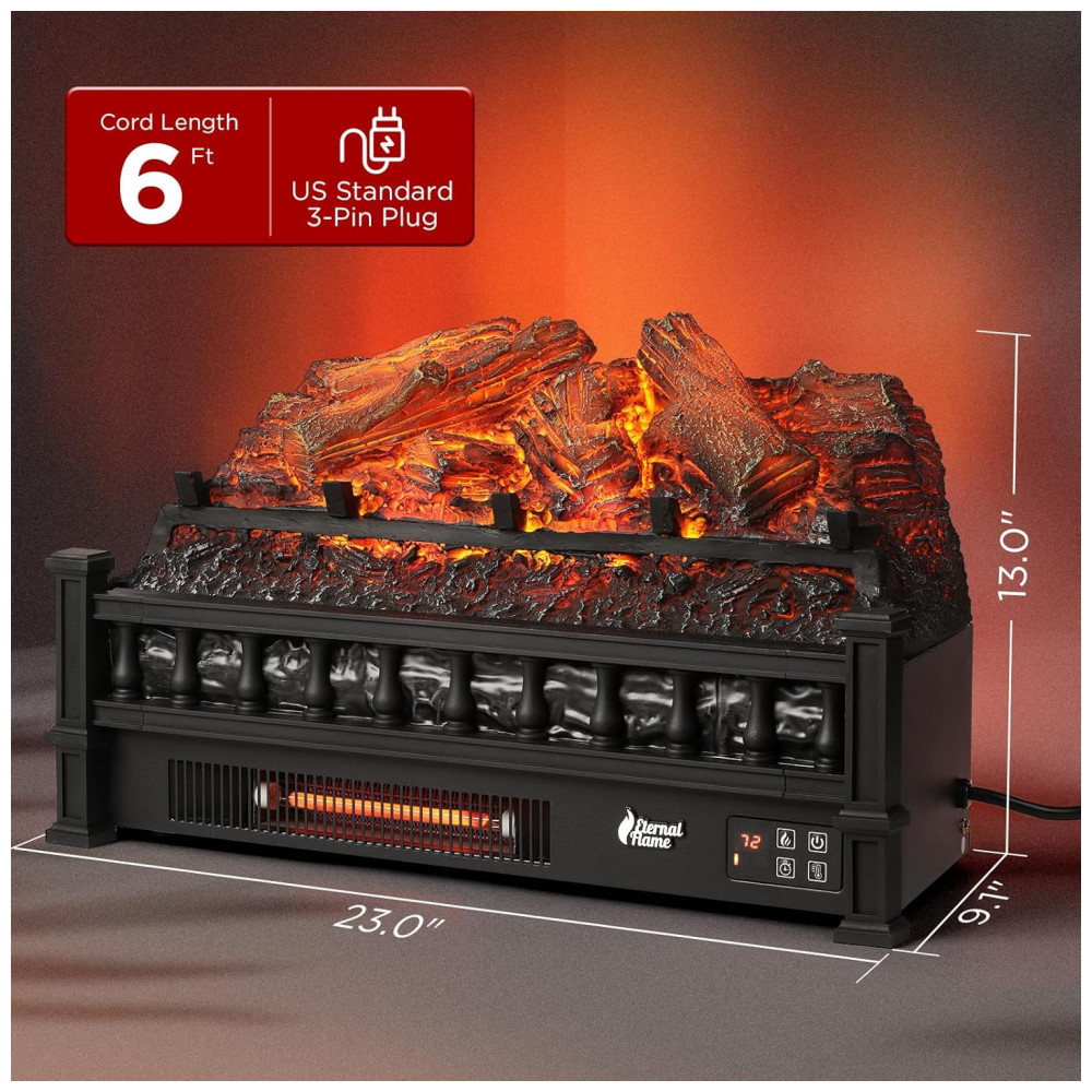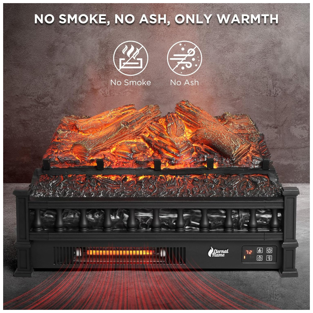Lareira Elétrica Ecológica 23″ 58 cm com Controle Remoto Cama de Brasa de Limão Realista Termostato e Temporizador 110V 1500W TURBRO EF23-LGBK Preta